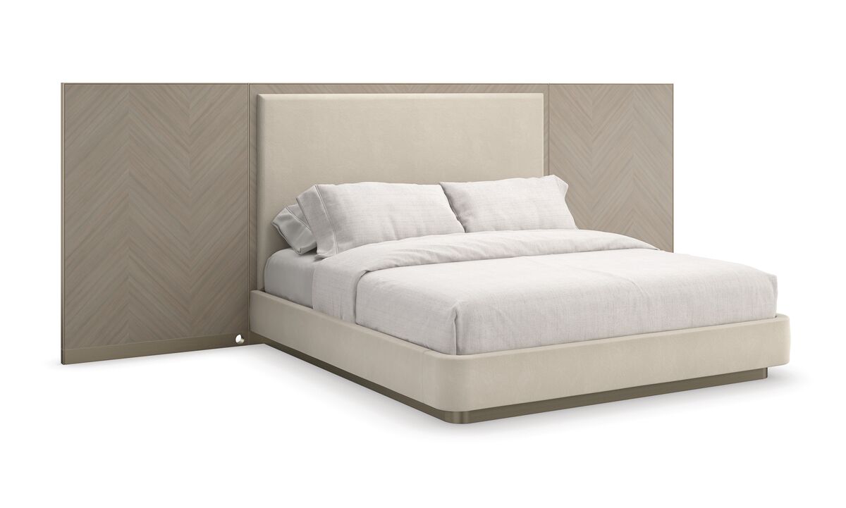 Элегантная кровать Anthology, воплощающая в себе искусство и функциональность, представлена в умиротворяющей нейтральной гамме, создающей теплую и привлекательную атмосферу. Крылья из шпона кото с узором в стиле шеврон, вдохновленным античными греческими мотивами, элегантно оформляют изголовье, обтянутое мягкой, но прочной шерстяной фланелью. Металлический профиль в оттенке матового золота придает деликатное разграничение и нежное мерцание. Утонченный силуэт, будто парящий на пьедестале цвета матового золота, вносит в интерьер спальни и гостевых апартаментов элегантность, которая при этом не выглядит притязательной.