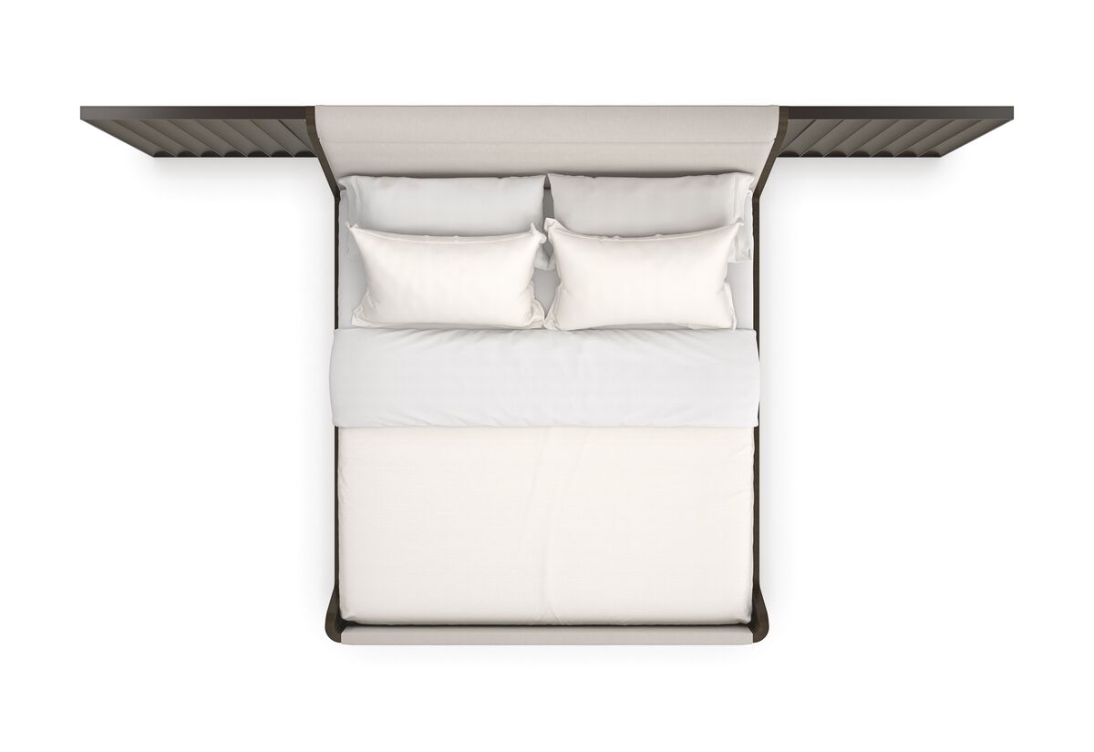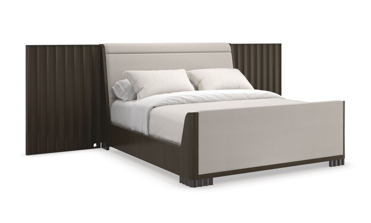 Вдохновленная неоклассической архитектурой, эта современная кровать с рифлеными панелями крыльев, обрамленными в сочетании цветов молочного и темного шоколада, делает яркое впечатление. Кровать украшена удобным скошенным изголовьем и чистым изножьем, покрытым искусственным шелком с микрорельефным эффектом, встречающимся на других предметах нашей коллекции. Панели продаются в комплекте и имеют доступ к шнуру в нижних углах для дополнительной функциональности.
