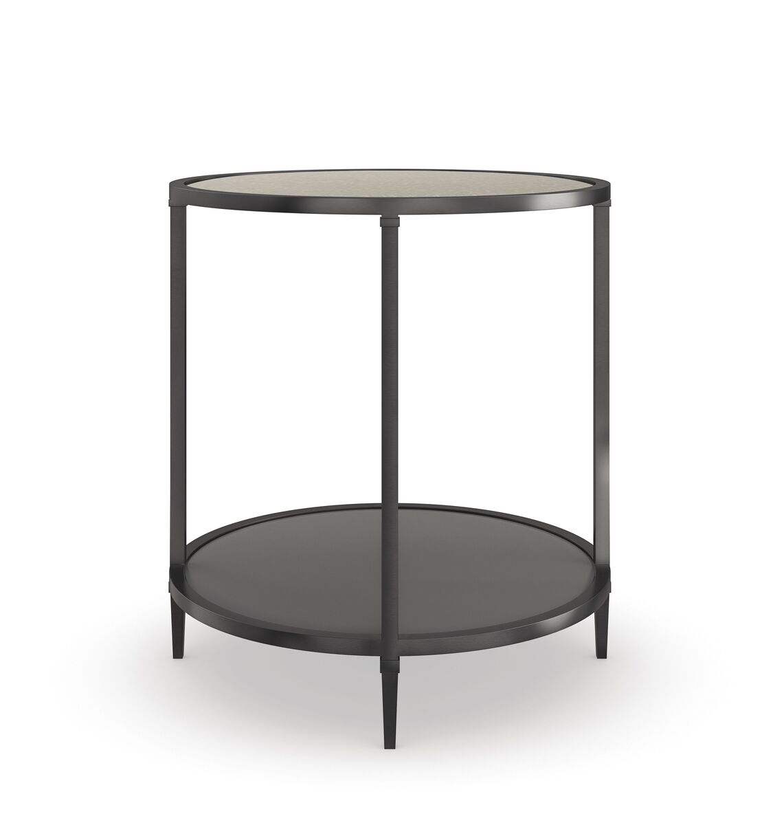 Незаменимый боковой столик Smoulder Round классической круглой формы с зеркальной столешницей в античном стиле для придания глубины и отражения. Его тонкая, но прочная конструкция включает металлический каркас цвета матовой бронзы с высокими коническими ножками и деревянную полку цвета теплого шифера для открытого хранения и демонстрации. Элегантный в своей простоте и сочетании материалов, он представляет собой вневременной стиль с бесконечным потенциалом.