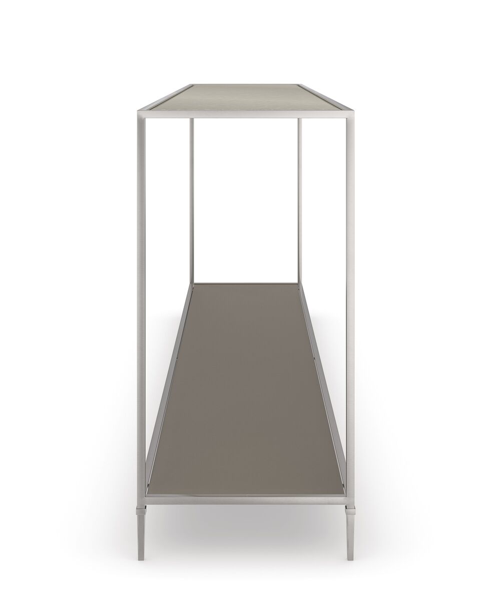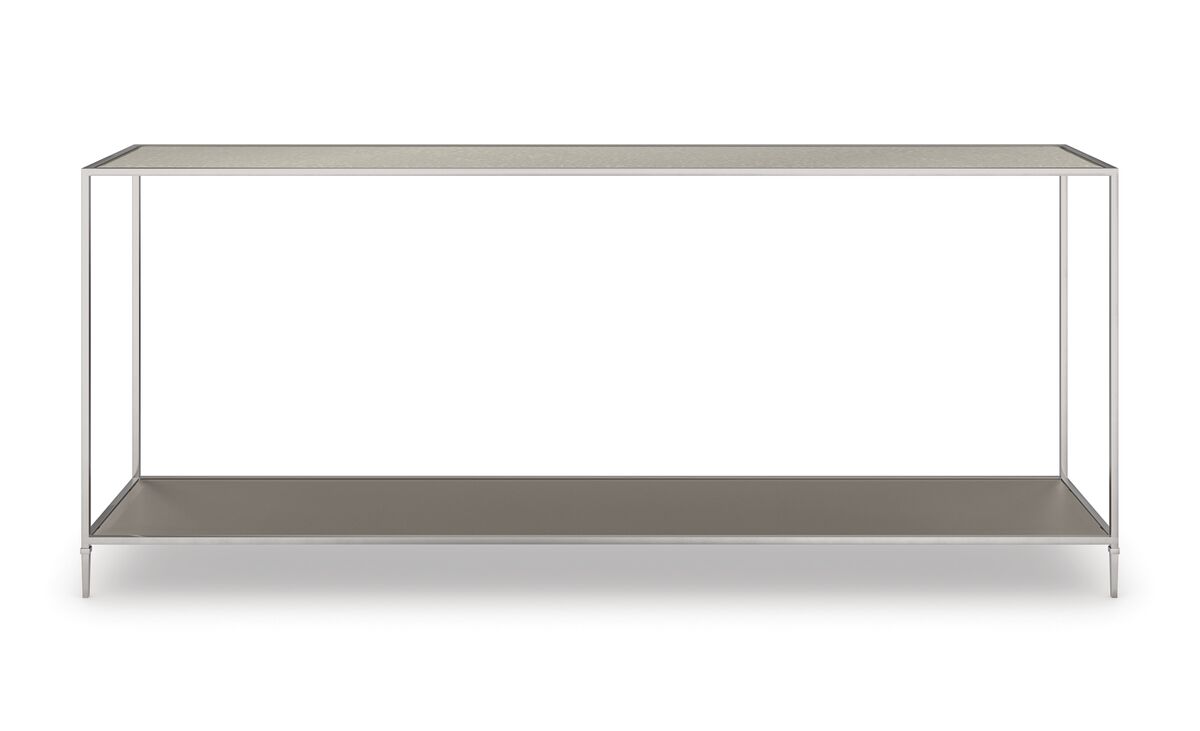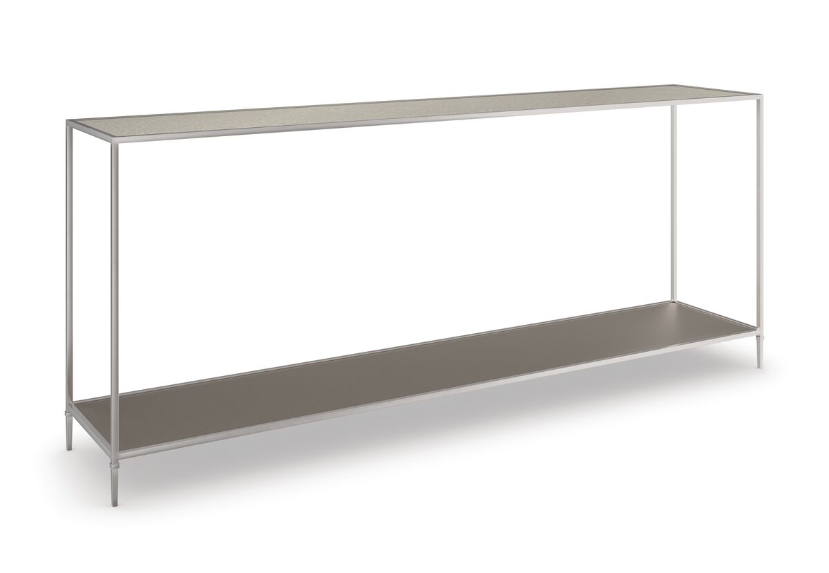 Элегантный и утонченный консольный столик, созданный из изысканного сочетания материалов, предлагает безграничные возможности для стиля. Его тонкая, но прочная конструкция включает в себя изящный металлический каркас с высокими коническими ножками и полку в металлическом оттенке для открытого хранения и демонстрации. Зеркальная столешница в античном стиле добавляет глубину и характер этому элегантному классическому силуэту.
