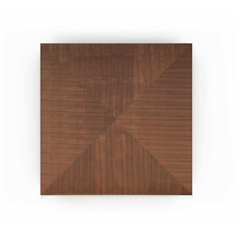 Журнальный стол Bello — изысканное воплощение классической отделки деревом. Шпон ореха Retro Walnut, выложенный вручную в виде пересекающихся треугольников, украшает столешницу и плавно спускается по бокам к тонкому цоколю, сужающемуся к основанию. Это основательный, солидный предмет, который особенно хорошо смотрится с крупными диванами в просторных гостиных. Его размеры продуманы так, чтобы он органично вписывался в композиции с мягкой мебелью Bello.
