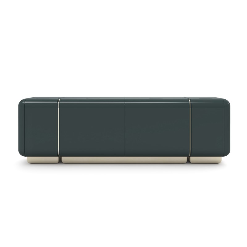 Гладкая, блестящая и обтекаемая, Тумба под ТВ GELEE - APATITE добавит яркий акцент и насыщенный цвет в любую гостиную. Её глянцевая поверхность в отделке Apatite Gloss сочетается с элегантными вставками цвета Whisper of Gold. Четыре выдвижных ящика открываются с помощью встроенных потайных ручек и оснащены направляющими с мягким закрыванием. Внутренняя отделка подобрана в тон. Скульптурное основание из трёх вогнутых секций отделано вручную оракалом и эффектно мерцает, добавляя глубины и света.