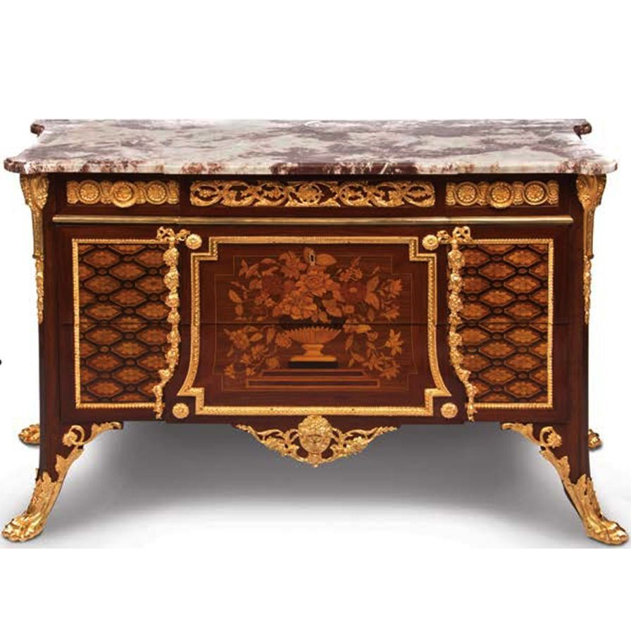 Комод в классическом стиле, выполненный из дерева, бронзы и мрамора.