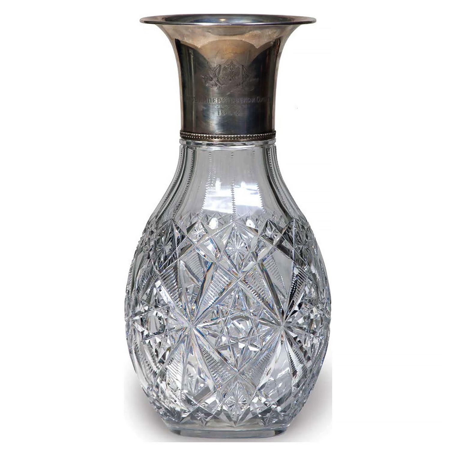 Ваза "Призъ Императорской охоты 1904" из хрусталя с серебряными элементами.