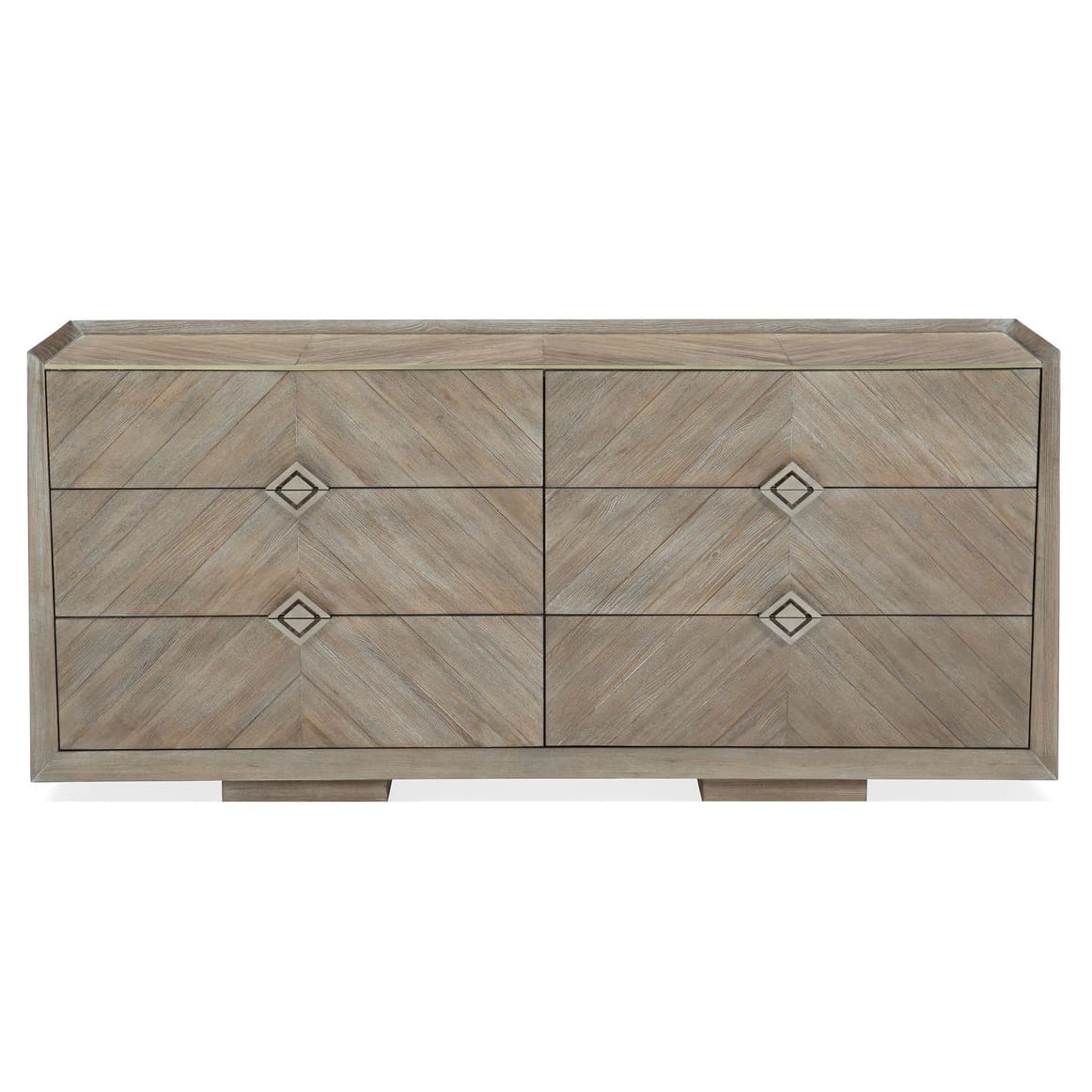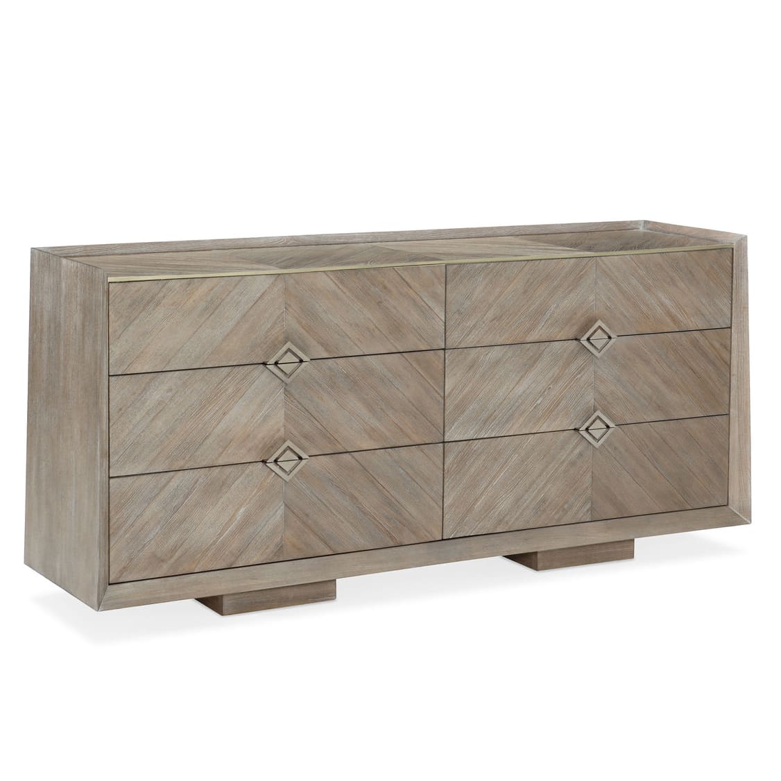 Обреченный быть в центре внимания, комод Naturally, спроектированный дизайнерами американского бренда Caracole, несомненно произведет «вау»-эффект. Его простой и практичный силуэт подчеркивает естественную красоту натуральных материалов. Идеально подобранный рисунок шпона создает уникальный шевронный узор, который притягивает взгляд и создает заниженное дизайнерское заявление. Элегантная светло-коричневая отделка с текстурой ясеня Ash Driftwood придает поверхности нотку роскоши, а металлическая фурнитура в золотистом финише (Sundance Gold) добавляет еще один штрих уникальности предмета. Шесть выдвижных ящиков скрывают интерьер в бежевых тонах, предлагающий достаточно место для хранения ваших любимых вещей