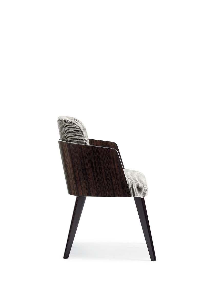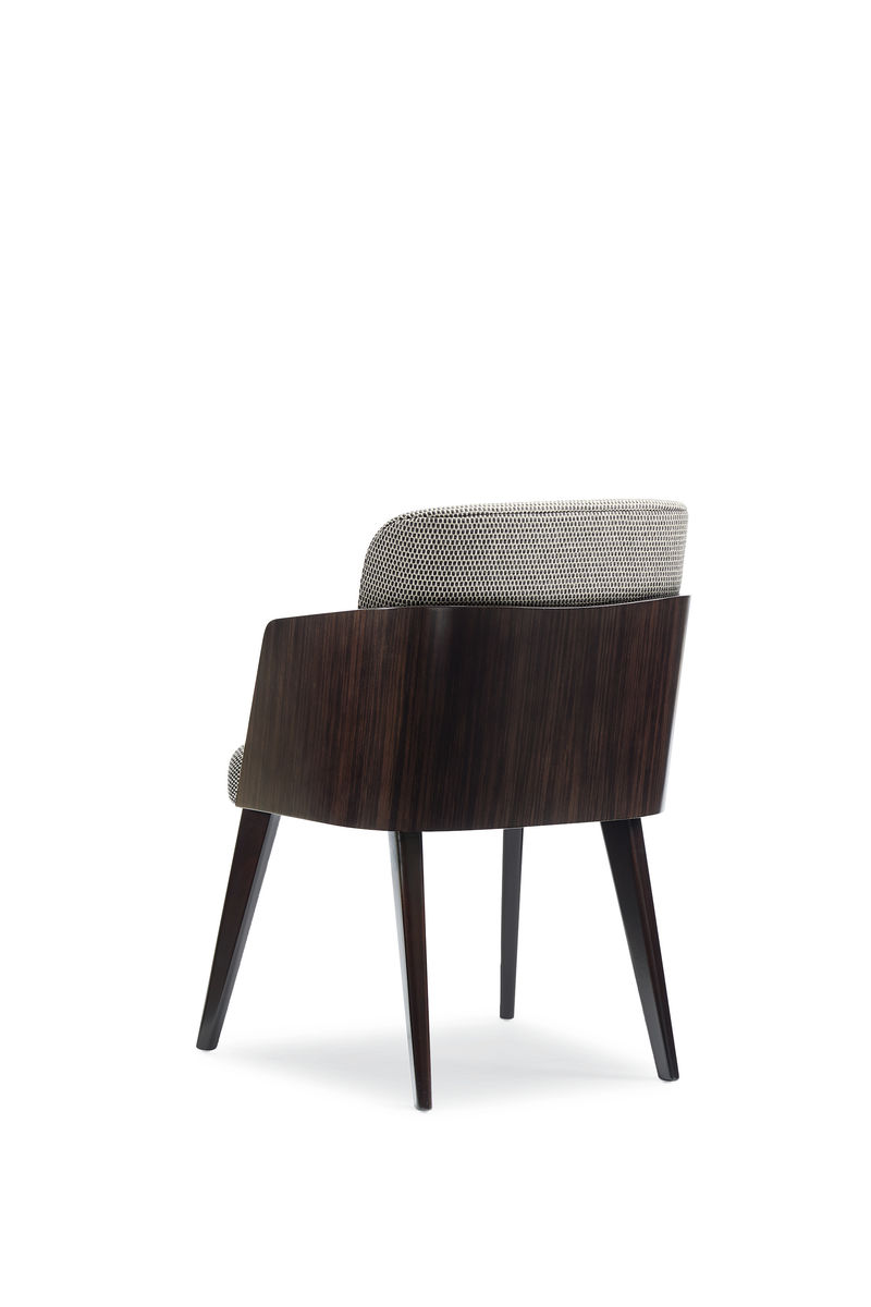 Неоклассические элементы дизайна придают стулу The Olav современный вид, одновременно напоминая об эстетике 70-х годов. Изделие, созданное для смягчения и баланса прямых линий классических обеденных столов, способно произвести настоящую трансформацию в интерьере. Прямоугольные ножки стула отделаны вневременным орехом, а изящная полукруглая панель спинки изготовлена из «полосатой» древесины Ebony Macassar. Его корпус, обитый в мягкую плетеную ткань с решетчатым ретро-орнаментом угольно-серого и кремового оттенков, возвышается над изогнутой деревянной спинкой, что придает модели оригинальный вид, обеспечивая при этом исключительный комфорт. Умелая комбинация современного европейского стиля и актуальных отделок наделяет стул сдержанной элегантностью.