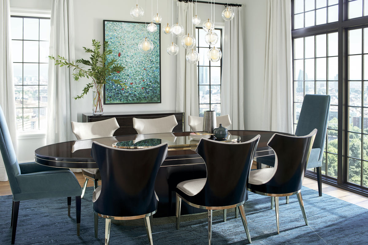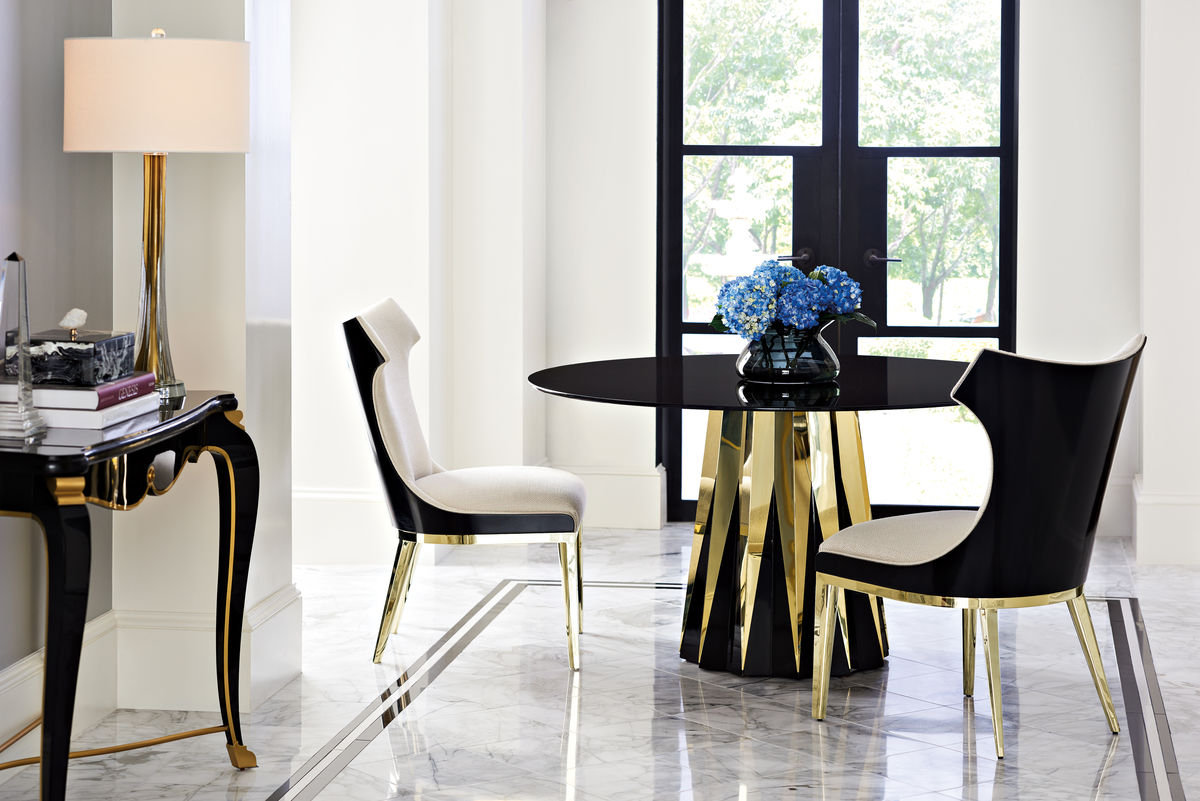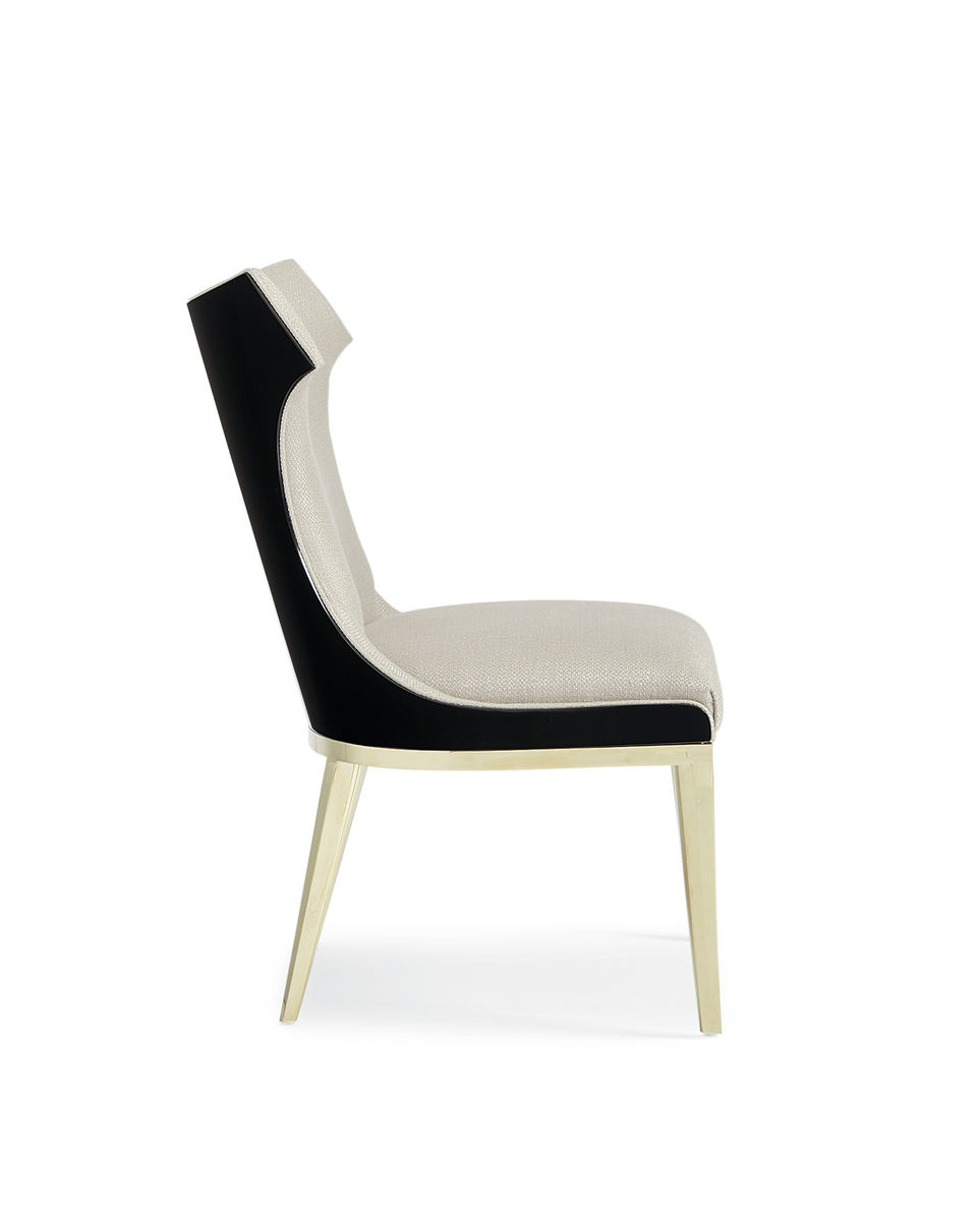 Стул The Urbane — стильная интерпретация классического стула клисмоса, созданного в Древнем Египте. Изделие, обеспечивающее высококлассный прием гостей, выполнено в актуальных цветах — черном и цвете слоновой кости. Элегантная, словно смокинг, изогнутая деревянная спинка отделана атласным эбеновым деревом, а внутренняя ее часть и сиденье обиты тканью с шахматным плетением в сияющем оттенке лунного камня. Основание стула и тонкие конические ножки украшены темной бронзовой отделкой.
