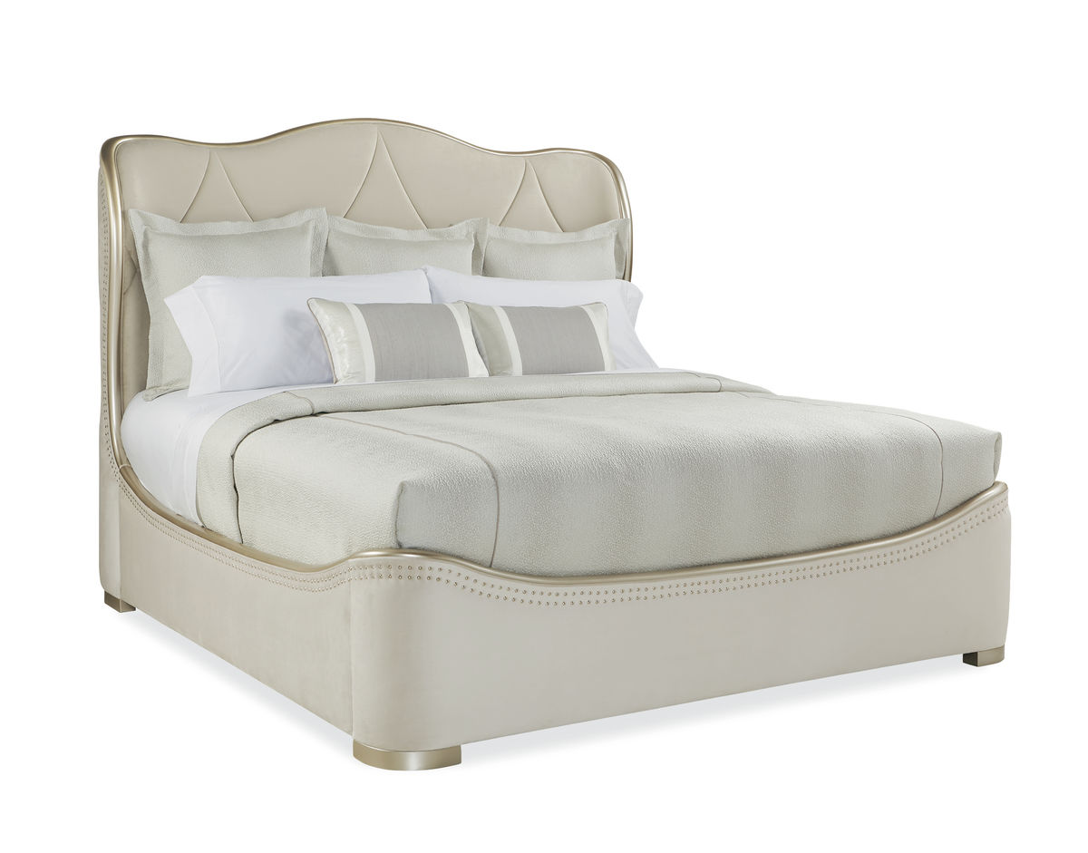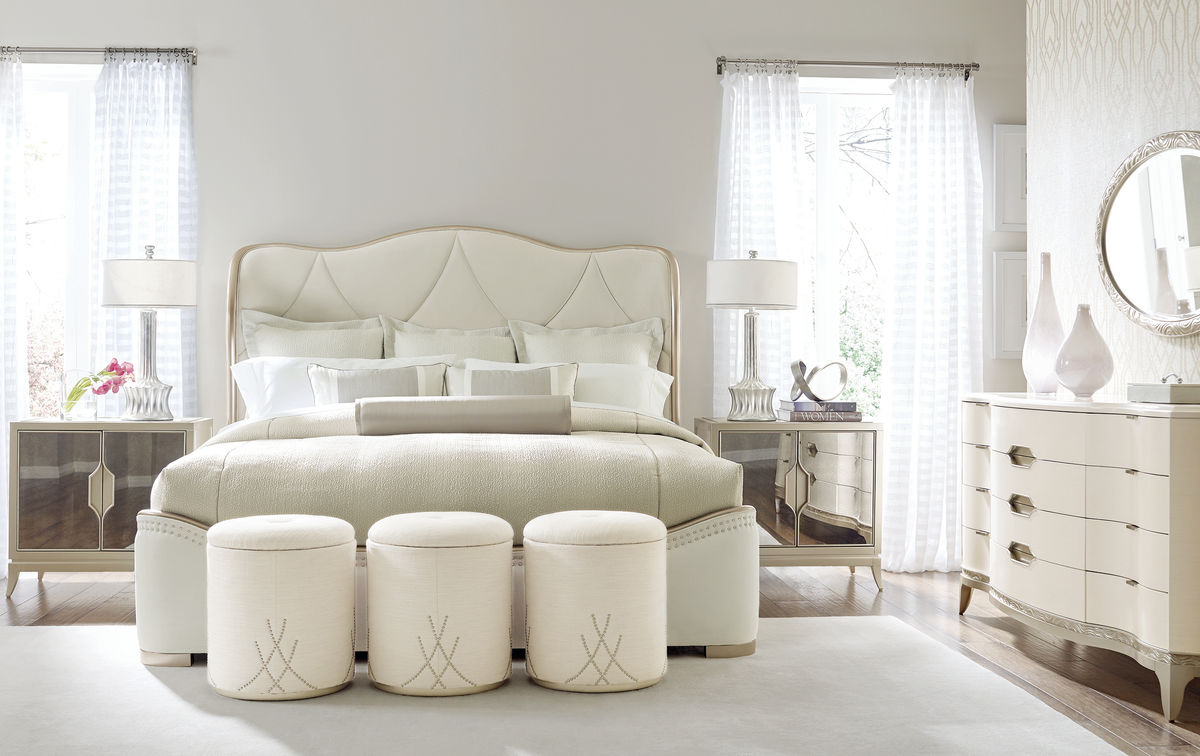 Невозможно не заметить величие кровати Adela от американского бренда Caracole, полностью обитой в роскошный бархат кремового оттенка. Изящно изогнутое изголовье украшено красивым узором тафтинга, а деревянная рама в жемчужно - золотистой отделке акцентирована двумя рядами декоративных гвоздиков. Роскошная кровать Adela идеально подходит для просторных спален.
