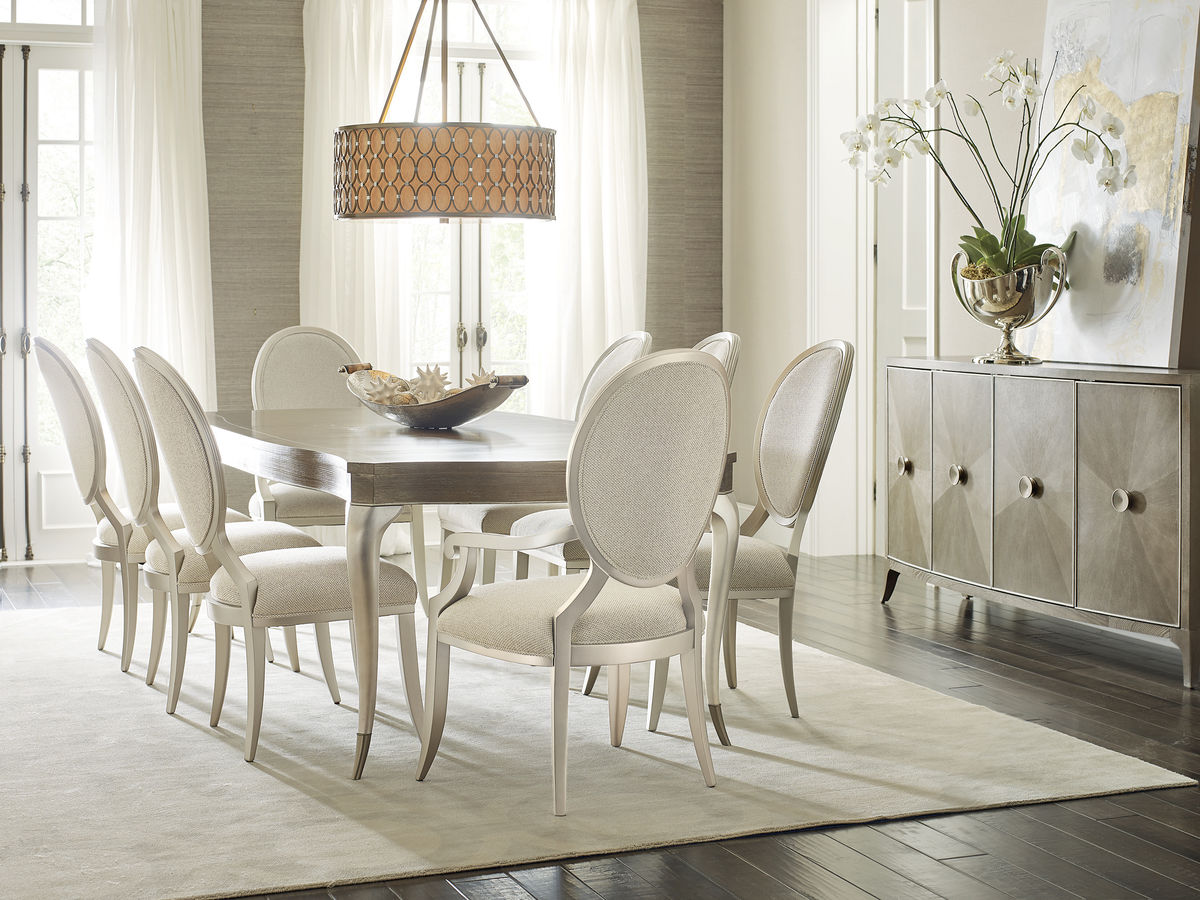 Классические заостренные ножки и деревянная рама в нежной серебристой отделке Soft Silver Paint превращают обеденный стул Avondale от американского бренда Caracole в произведение мебельного искусства. Его овальная спинка и сиденье обиты мерцающей матовой твидовой тканью нейтрального тона. Поставьте эти стулья с традиционным или современным обеденным столом — и создайте удобное пространство для званых обедов и бесед по душам.
