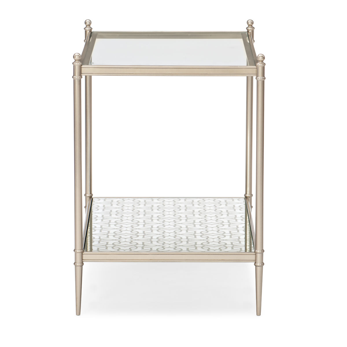 Поверьте, идеально сбалансированный боковой столик Perfectly Adaptable от американского мебельного бренда Caracole именно то, что вам необходимо. Минималистичный дизайн изящно масштабируется и идеально вписывается в любую обстановку. Современное сочетание материалов включает в себя столешницу из прозрачного стекла, металлическую раму цвета Neutral Metallic и нижнюю полку, изготовленную из зеркала с узором в оттенке с эффектом металлик (Silver Leaf). Хранение, сервировка или демонстрация — этот стильный предмет подходит для любого случая.