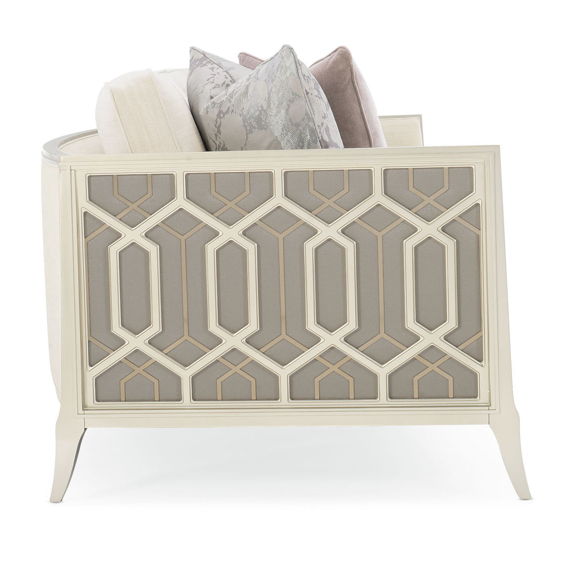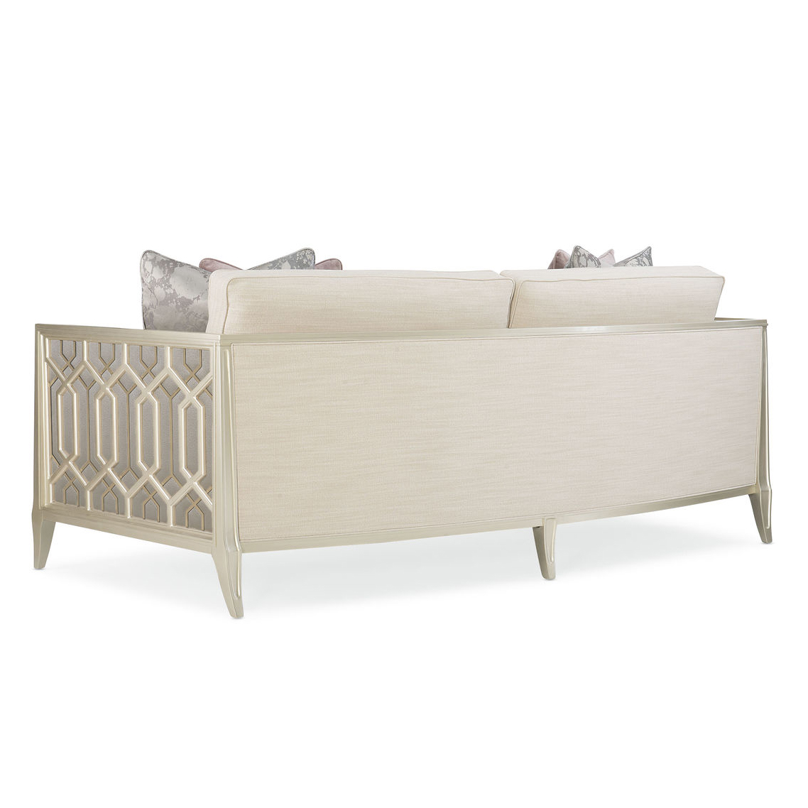 Каждый раз, при взгляде на диван Just Duet, вы будете вспоминать замечательную историю, вдохновившую дизайнеров американского бренда Caracole на создание его неповторимого образа. Боковины дивана акцентированы уникальной деревянной рамой с резьбой, навеянной узорами балконных перил дворцов Индии, а идея геометрического орнамента из металла пришла от двойной тени, отбрасываемой на балкон заходящим солнцем. Изысканные ткани и роскошные акцентные подушки дополняют оригинальную привлекательность, а неповторимый дизайн изделия подчеркивают фирменные глянцевая золотистая (Golden Glow) и серебристая (Soft Silver Paint) отделки.