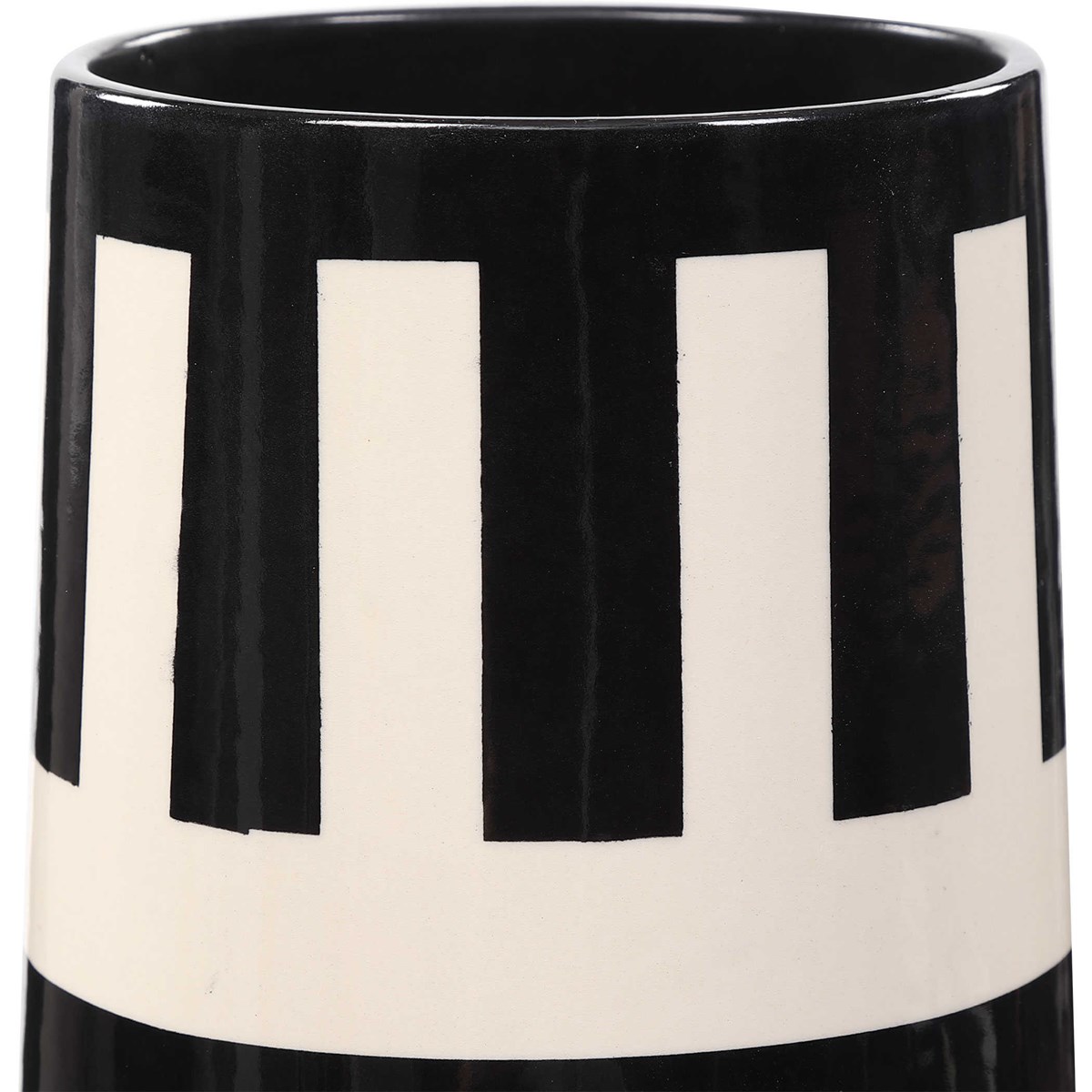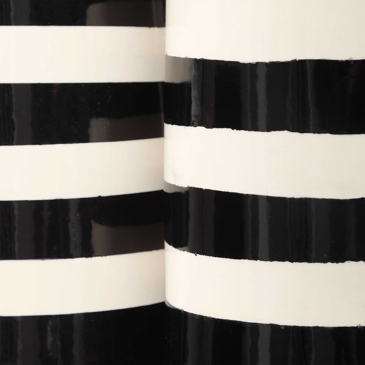 Набор из двух керамических ваз Amhara станет ярким акцентом для вашего интерьера благодаря современному черно-белому полосатому узору, вдохновленному племенной эстетикой. Изящные линии и контрастные цвета придают вазам динамичный характер и визуальную выразительность.