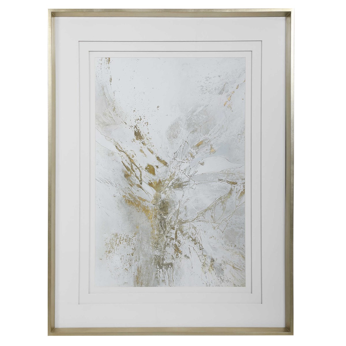 Создайте в своем интерьере элегантный облик с этим изысканным абстрактным принтом. Нейтральная цветовая гамма произведения искусства, включая оттенки светло-серого, белого и сусального золота, придает ему женственную изящность.