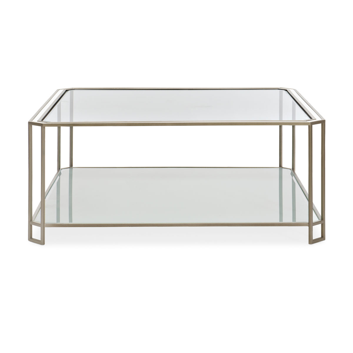 Очаровательный журнальный столик Center Stage - это воплощение утонченности, заслуживает того, чтобы занять центральное место в вашем доме. Безупречный с любой точки зрения, он элегантно сочетает металл и стекло с бликами белого цвета. Дизайн Center Stage начинается с четкой квадратной рамы с зазубренными углами, обрамляющей столешницу из скошенного стекла с золотой отделкой Sundance Gold. Элегантная белая инкрустация очерчивает верхний обод, а открытая нижняя полка под ним имеет координирующий элемент из закаленного стекла, окрашенного в белый цвет. Получился легкий, освежающий и удивительный в своей простоте образ. Дополните его любимыми книгами и декоративными аксессуарами, и вы получите эффектный центральный элемент для любой зоны отдыха.