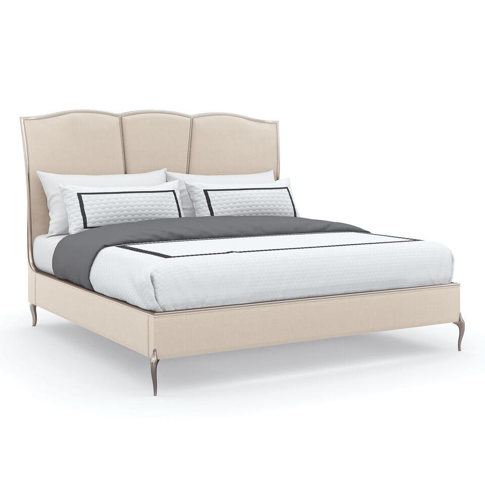 Изголовье кровати мастерски скроено, придавая ему изящный и изогнутый силуэт, который обнимает спину и создает ощущение обволакивания. Оно украшено тонкой деревянной рейкой, окрашенной в изысканный оттенок Soft Silver Paint. Этот элемент придает изголовью дополнительную изысканность и утонченность.