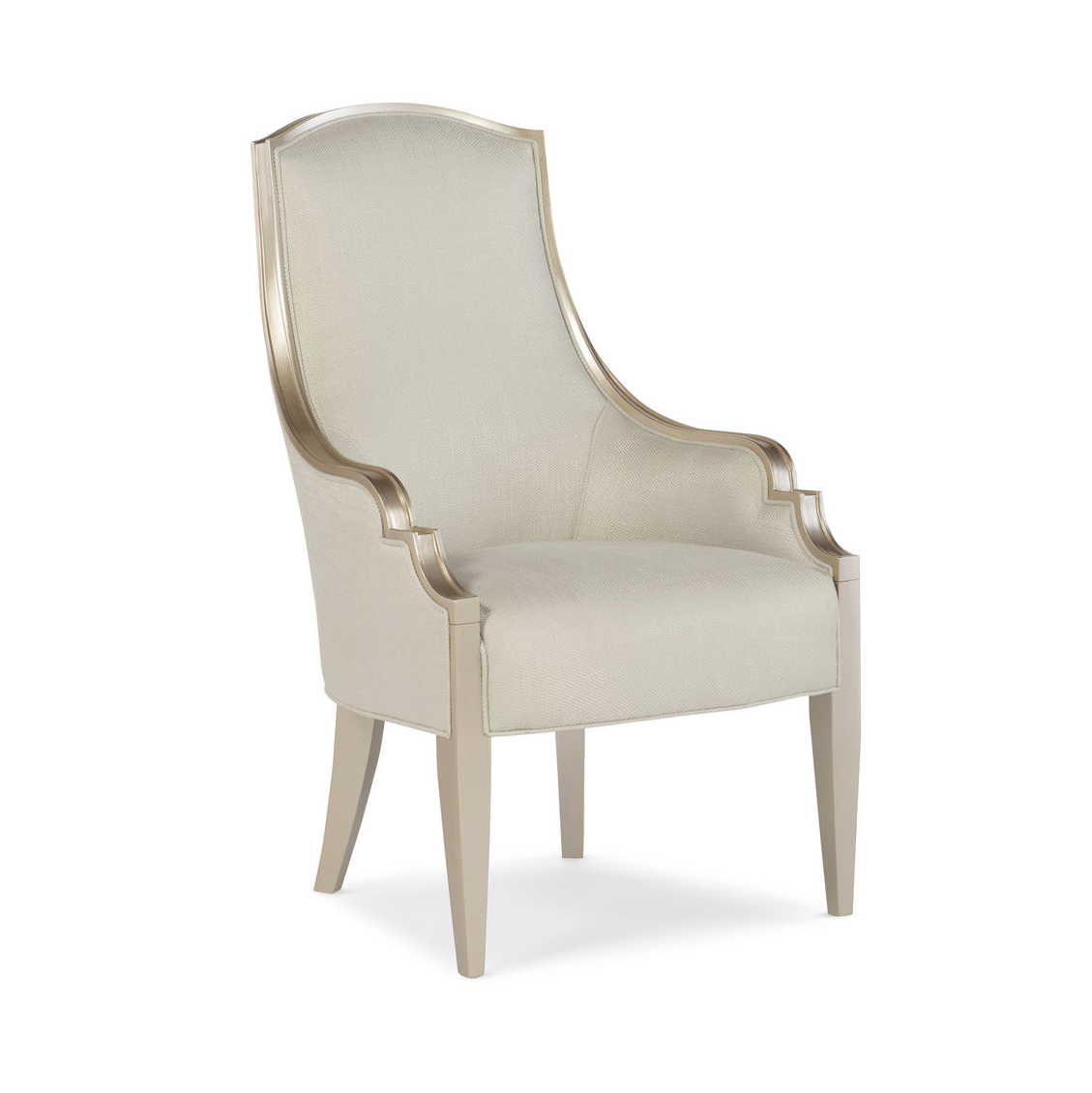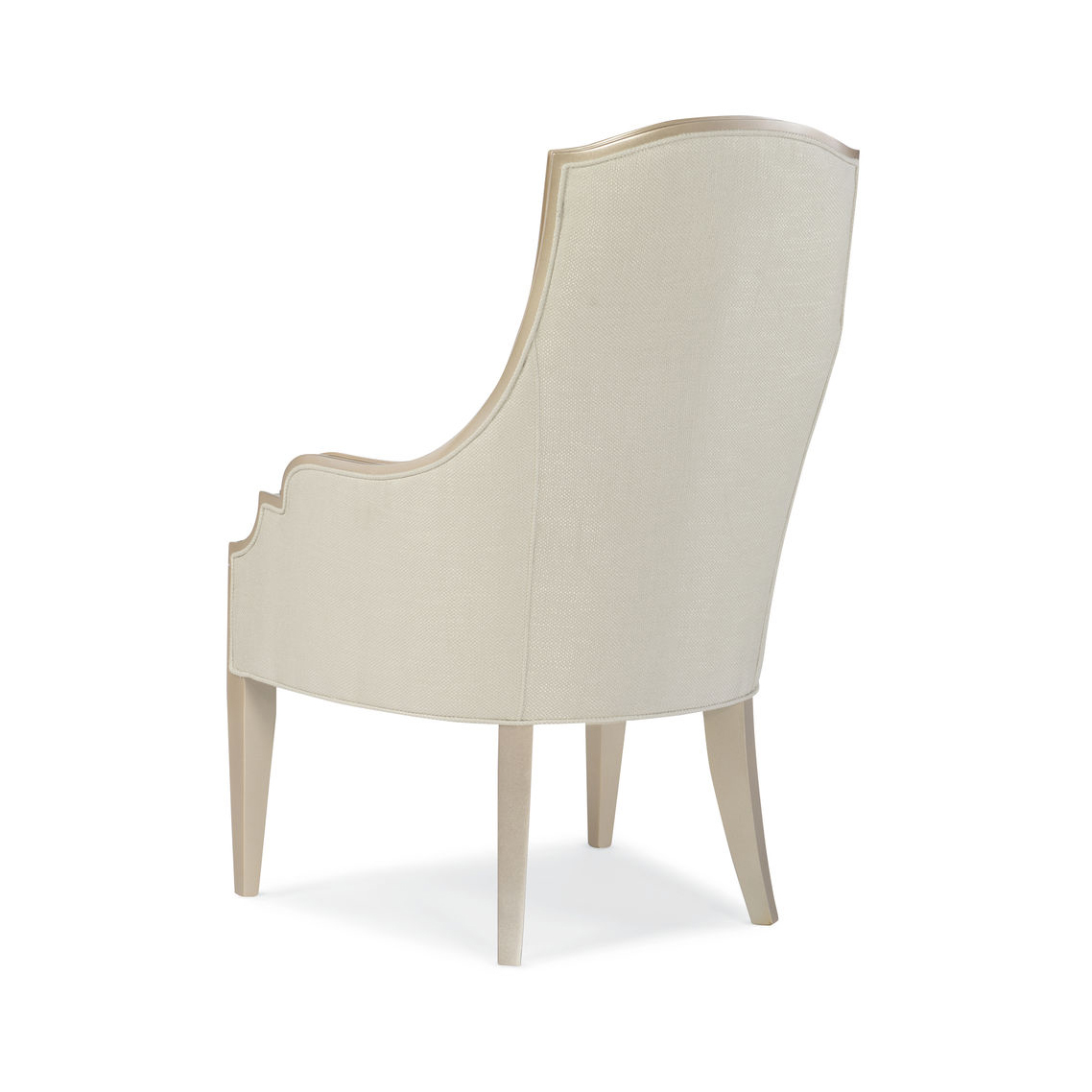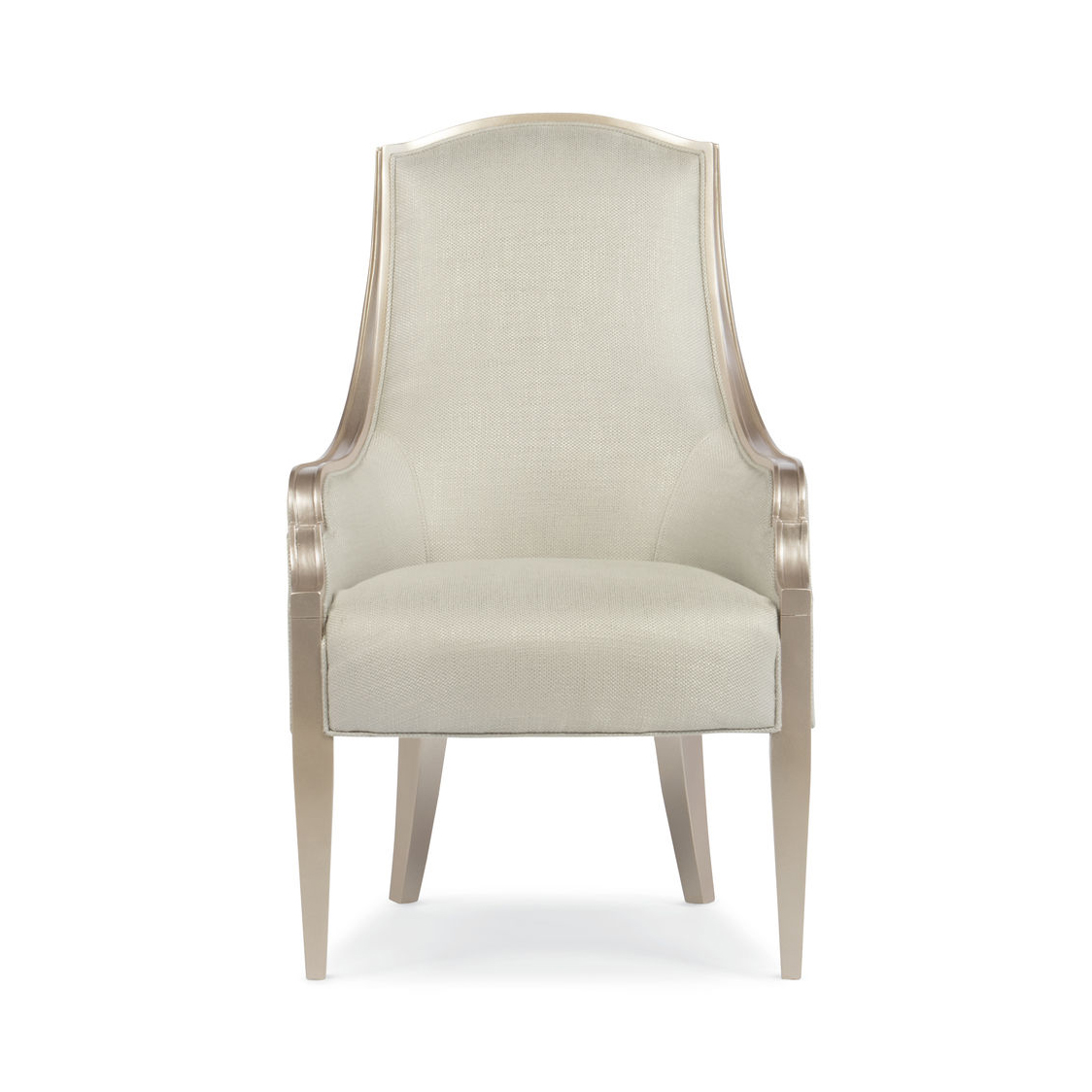 Кресло Adela Arm Chair — воплощение изысканности и элегантности. Его четкие линии и изящная спинка создают впечатление французского стиля. Оно представлено с высокой спинкой, которая искусно вписывается в раму цвета металлик Blush Taupe, создавая гармоничное сочетание. Рама огибает спинку и спускается по подлокотникам, завершаясь современными заостренными ножками.