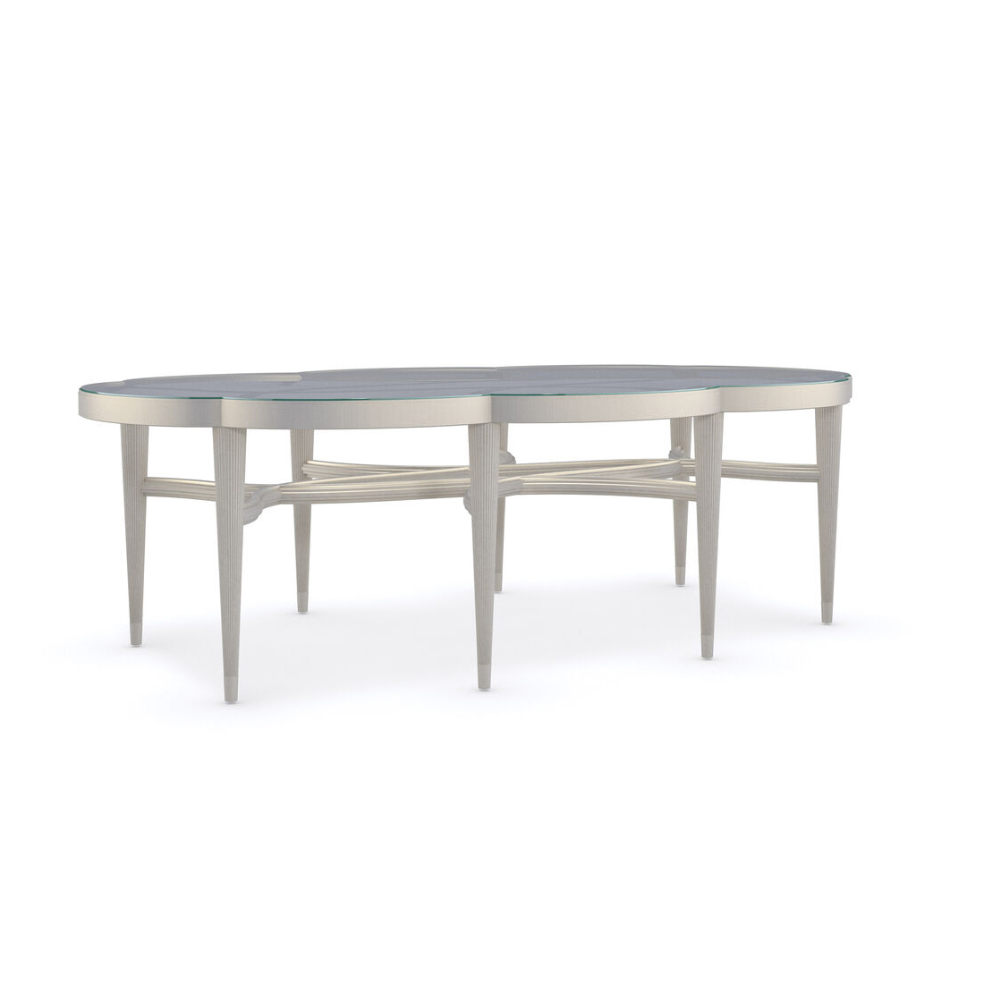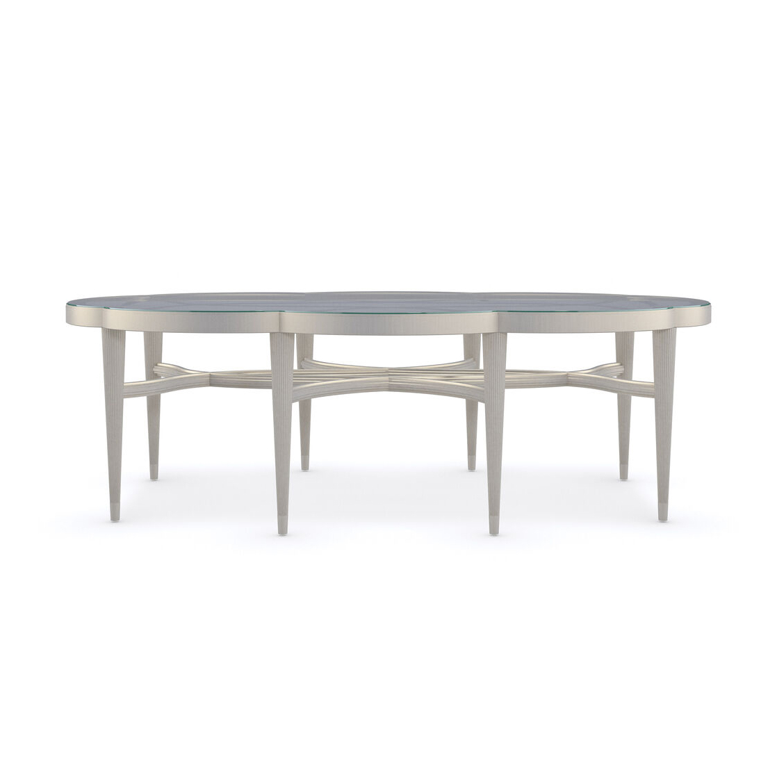 Журнальный столик Lillian овальной формы, украшенный изысканным орнаментом, добавляет гламурный акцент в зону отдыха. Деревянное обрамление в цвете Soft Radiance и стеклянная столешница с вставками демонстрируют замысловатый переплетающийся узор, объединяющий тонкие рифленые ножки. Этот столик идеально сочетается с боковым столиком Lillian, создавая гармоничный и стильный ансамбль в интерьере.