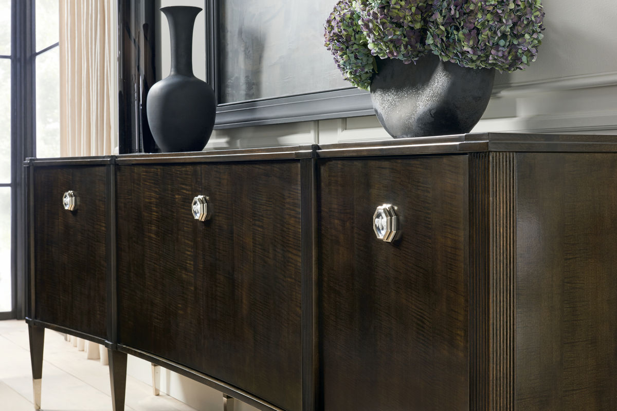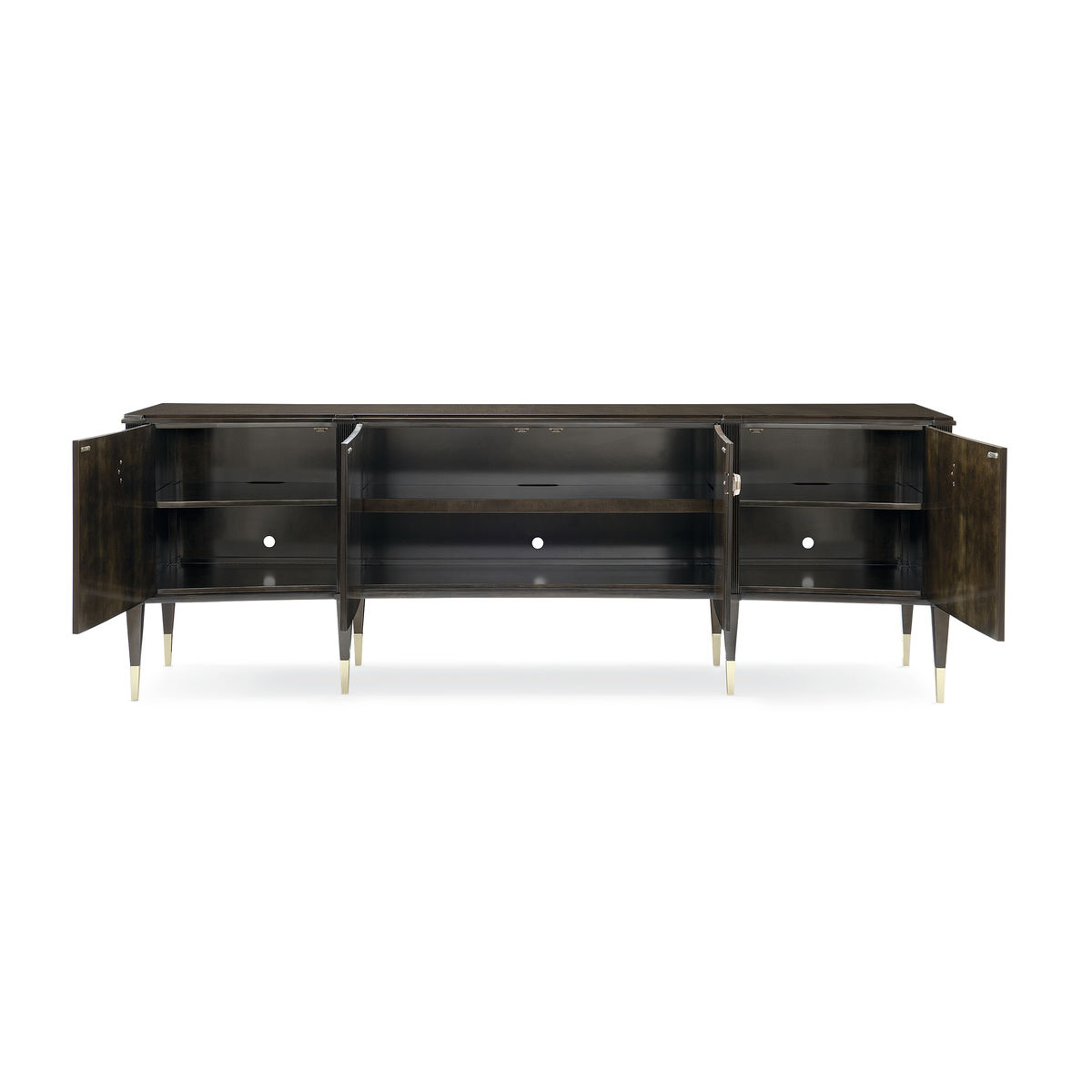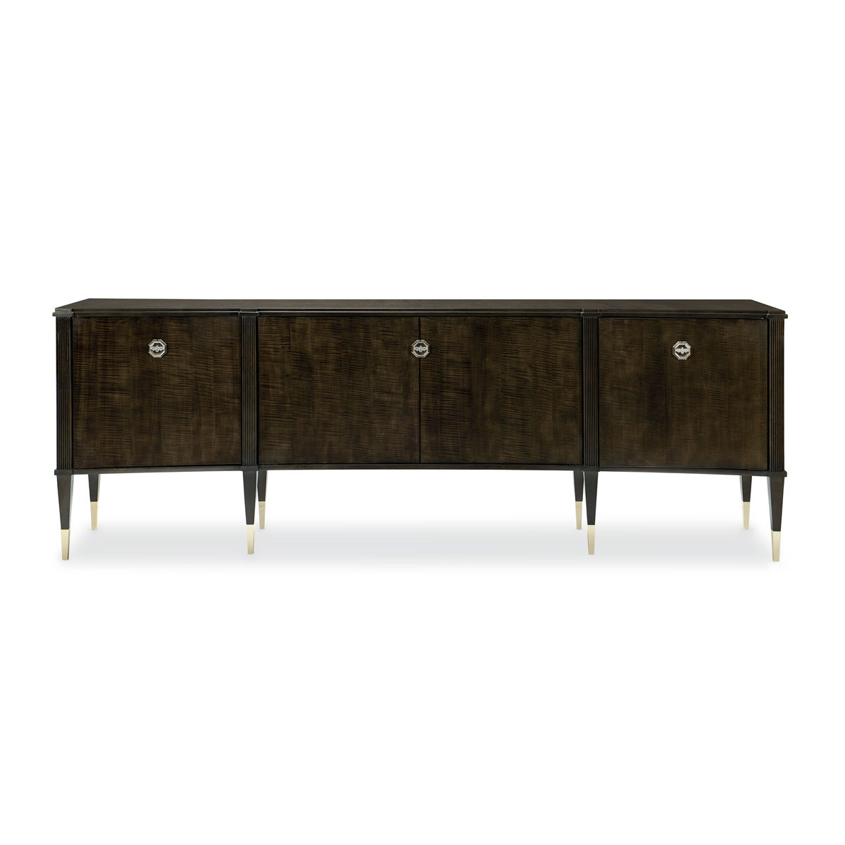 "What's All The Buzz?" - задаетесь вы вопросом, стоя перед этой величественной медиа-консолью. Фигурный клен, обрамленный тщательной отделкой Dark Roast, окружает большой, безупречно выполненный корпус, который слегка изогнут на передней панели и украшен тростниковыми деталями по всему периметру. Каждую дверь украшает восьмиугольная фурнитура с трехмерным изображением пчелы, созданная в стиле известных французских художников по хрусталю. Две центральные и две боковые двери открываются, раскрывая регулируемые полки и скрытый доступ для управления проводами на задних панелях. Завершают образ тонкие конические ножки с наконечниками Whisper of Gold.