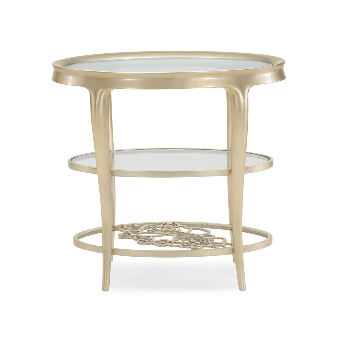 Трехуровневый журнальный столик Wild Flower, завершающийся искусной визуализацией, станет заметным элементом любого пространства. Великолепный на каждом уровне, он имеет овальный металлический каркас, обрамляющий верхнюю часть из закаленного стекла, и вторую полку под ней. Посмотрите ниже и откроете для себя третий уровень, где гордо красуются металлические подрамники с геометрическим цветочным узором. Изящные ножки-кабриоли поддерживают открытый дизайн и украшены отделкой Oracle. Поставьте этот изысканный столик рядом с любимым диваном или креслом, чтобы насладиться его многослойной красотой.