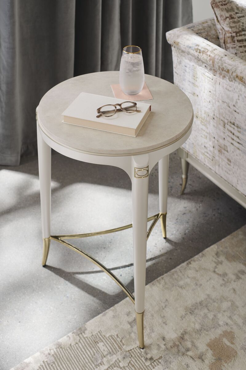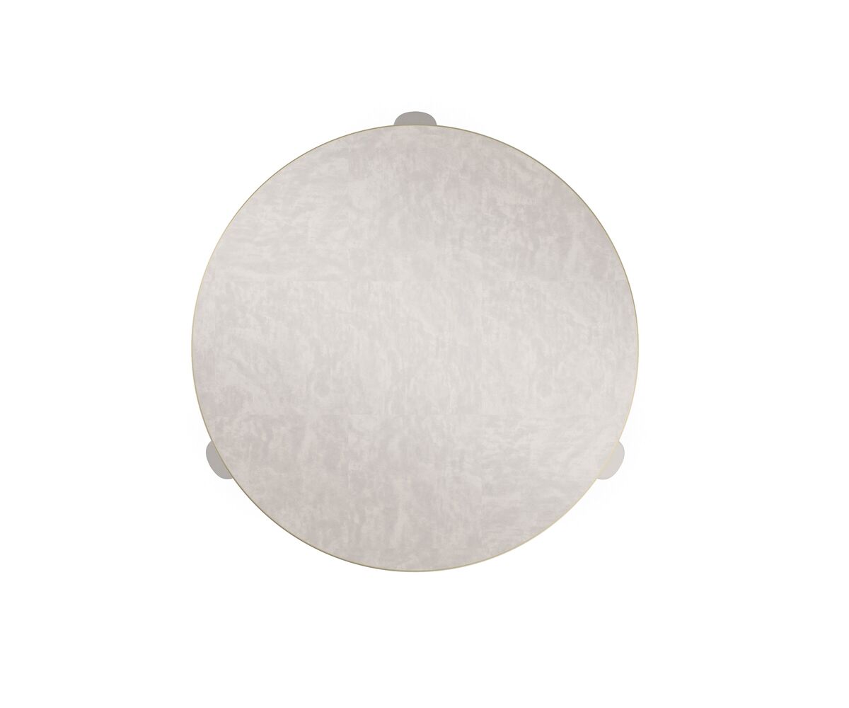Элегантный боковой столик Matched Up из капа мадроны, подобранного в случайном порядке, образует причудливые узоры, напоминающие облака. Высокие конические ножки украшены витиеватыми металлическими пряжками и соответствующими ободками золотистого оттенка. На нем можно разместить напиток или любимую книгу. Треугольная стеклянная полка добавляет интерес и создает легкую, воздушную поверхность для декора.
