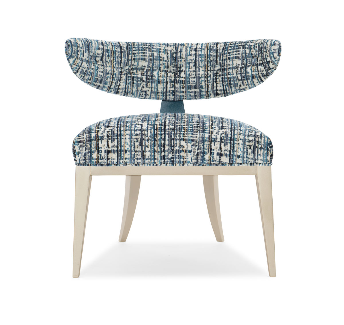 Богато текстурированный графический узор лазурно-дымчатого цвета придает глубину и объемность подушке сиденья и внутренней части спинки сиденья. Дизайн дополняется прошивкой пуговиц, которая придает стулу характерный шарм.