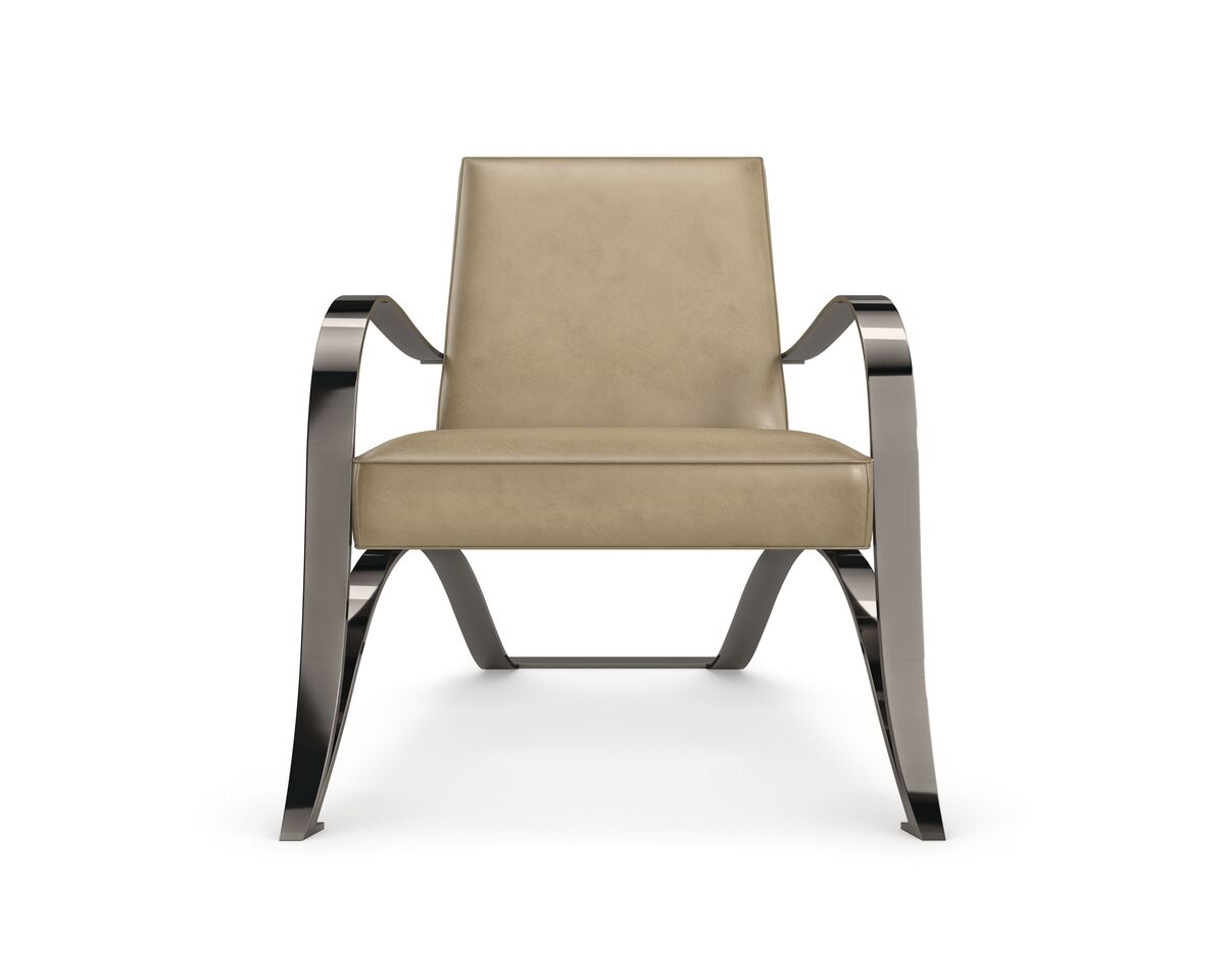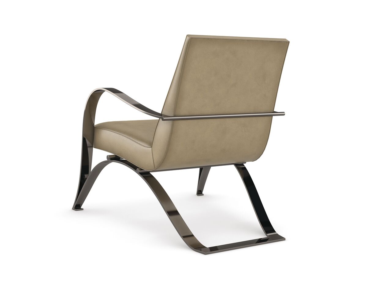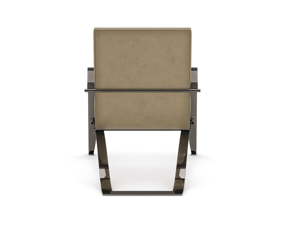 Изогнутые линии кресла создают уникальное напряжение и добавляют изящество его дизайну. Металлический каркас стула с идеально наклоненной спинкой и сиденьем обтянут маслянисто-мягкой нубуковой кожей, придающей ему роскошный вид и ощущение.