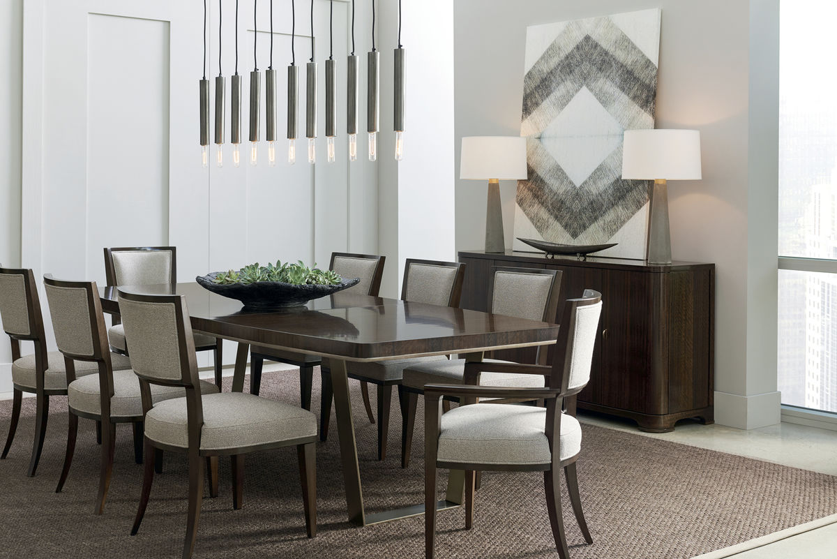 Дивный обеденный стол Streamline Dining из коллекции Modern Streamline Dining Room на высоких стильных металлических ножках. Он прекрасно подойдет для обычного ужина и для официальных встреч. К столу подойдут стулья и кресла из одноименной серии.