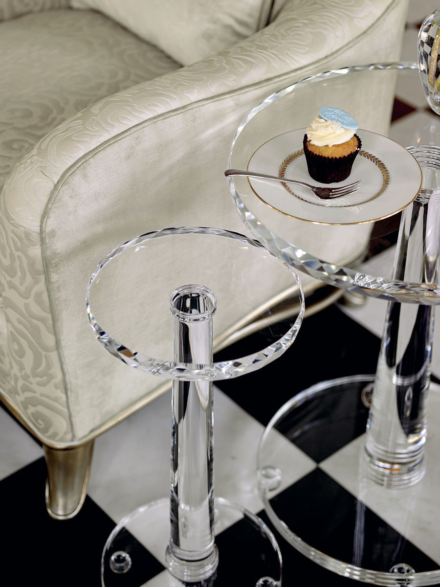 Боковой столик The Sophisticated из хрустального стекла обладает искусно ограненными краями в верхней части и основании, которые создают радугу отраженного света. Этот столик идеально впишется как в конец дивана в самых элегантных традиционных или современных интерьерах, так и в сочетании с The Drink Table между двумя стульями.
