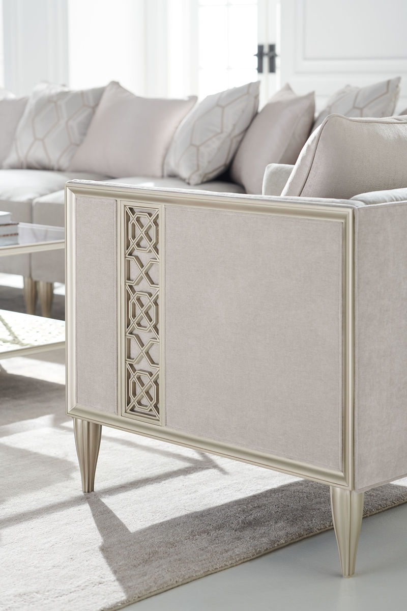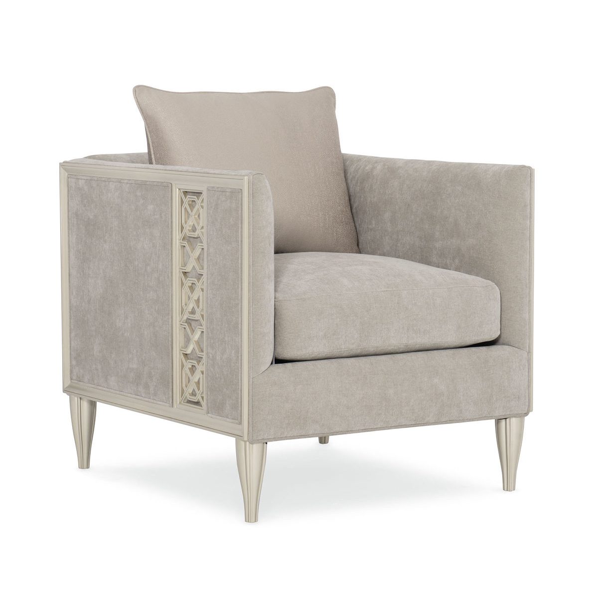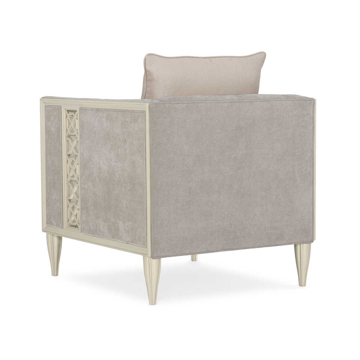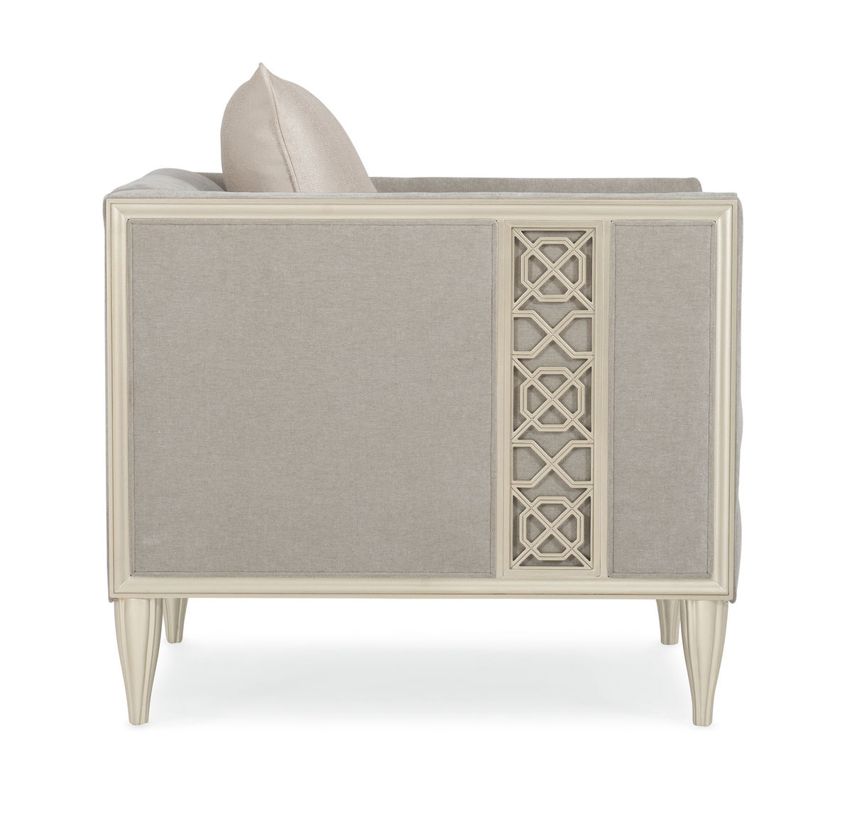 Мягкая серебряная краска, используемая для отделки, подчеркивает детали с панелями и придает креслу элегантный и роскошный вид. Конические рифленые ножки добавляют креслу стабильности и стиля, создавая гармоничное слияние с общим дизайном.