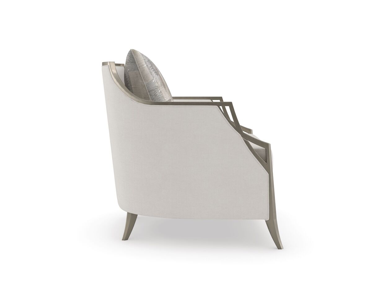 Кресло X Factor мастерски сочетает классические и современные элементы дизайна, создавая элегантный образ. Металлизированная отделка Charcoal Leaf подчёркивает его силуэт, а деревянная рама украшена современным крестообразным узором, который привлекает внимание к изящным подлокотникам и элегантным ножкам.