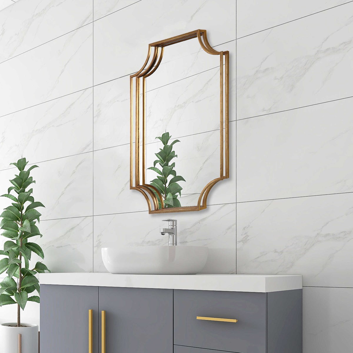 Рама зеркала Lindee выполнена из железа, вручную созданной с уникальной трехмерной структурой и изогнутой открытой рамой. Она украшена слегка состаренным золотым листом, что добавляет ей характера и роскоши.