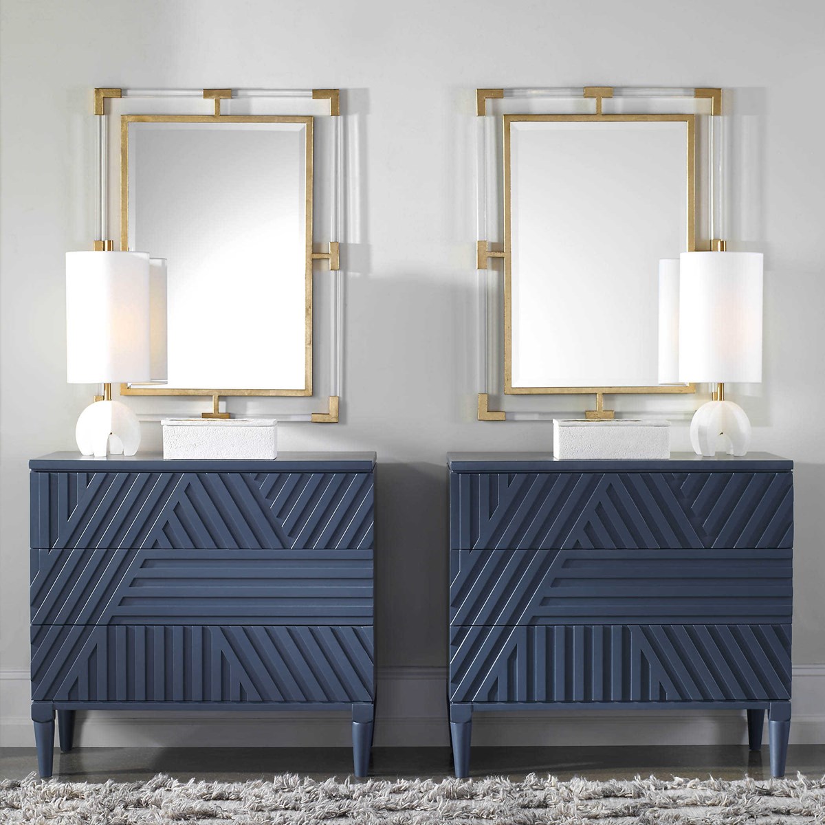 Зеркало Balkan от американского бренда Uttermost — это истинный фокус внимания в любой комнате. Сочетание кованого железа с металлическим покрытием из сусального золота и подвесных стержней из прозрачного акрила создает удивительно современный вид. Широкий скос зеркала около 3 см придает ему дополнительную глубину и структуру. Вы можете подвесить его как горизонтально, так и вертикально, позволяя этому зеркалу быть координационным центром и визуальным украшением вашего интерьера.