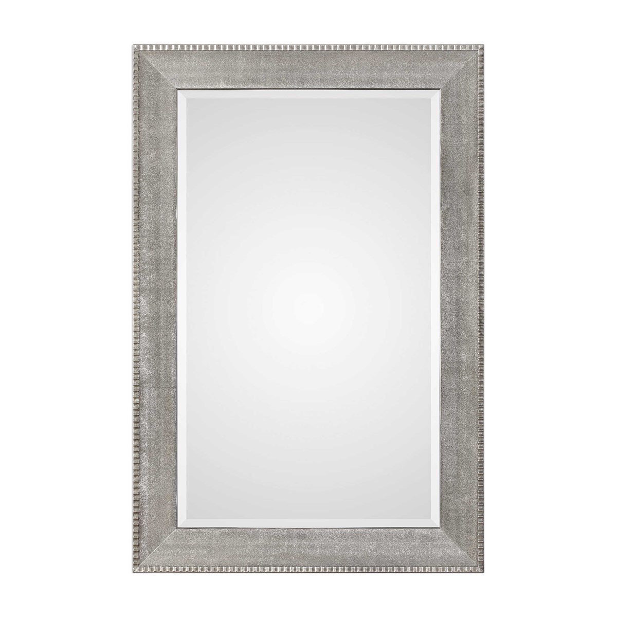 Оправа зеркала Leiston представляет собой сильно текстурированный наклонный профиль с серебристым металлическим оттенком, который придает ей современный вид. Рифленая кромка, выполненная в цвете состаренного серебра, придает зеркалу неповторимый характер.