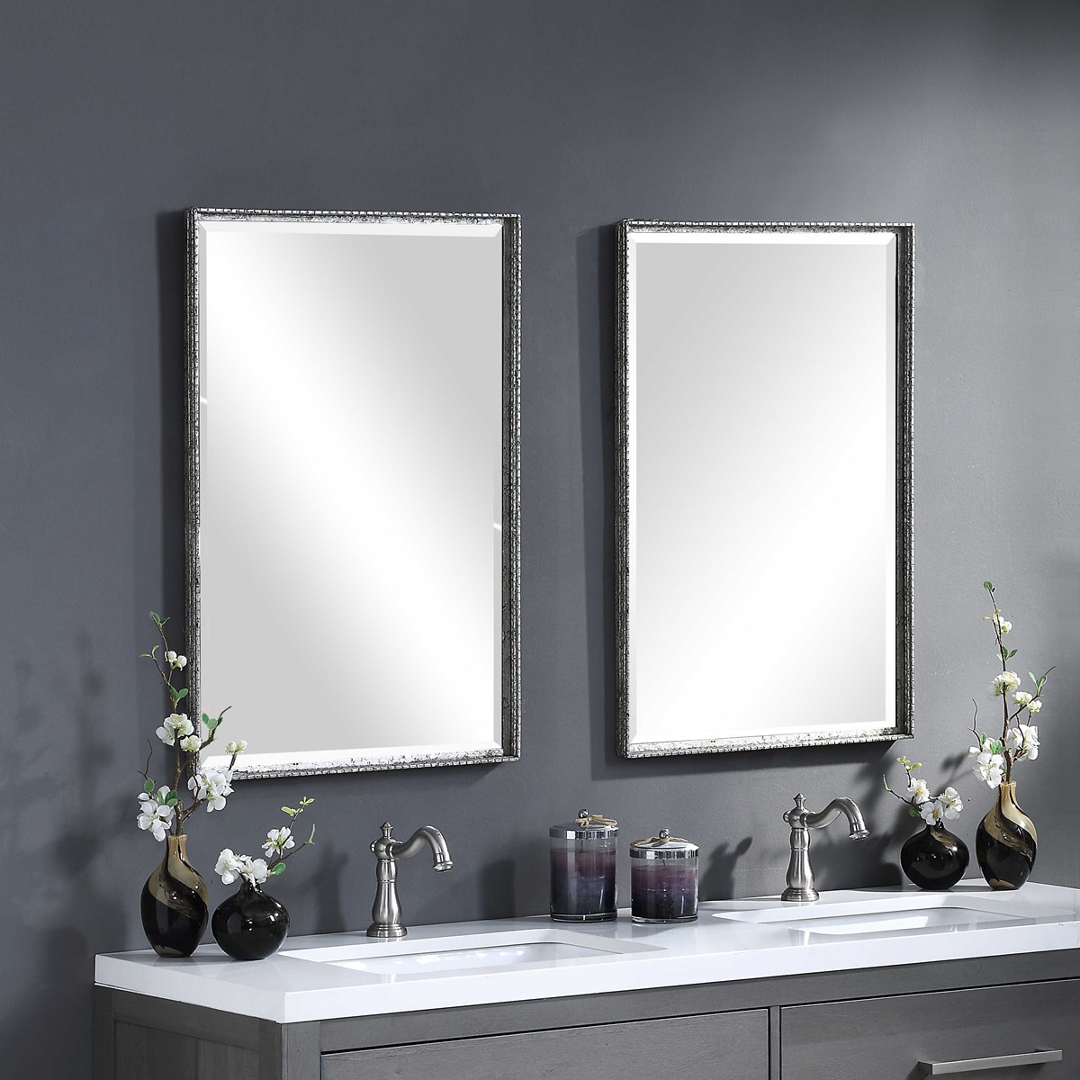 Зеркало Callan Silver Vanity от американского бренда Uttermost — это стильное косметическое зеркало с железной конструкцией, украшенное детализированными краями. Тонкая профильная рама отделана состаренным серебряным покрытием, придающим ей характер и стиль. Это зеркало может быть повешено как горизонтально, так и вертикально, что делает его универсальным и изысканным аксессуаром для вашей комнаты.