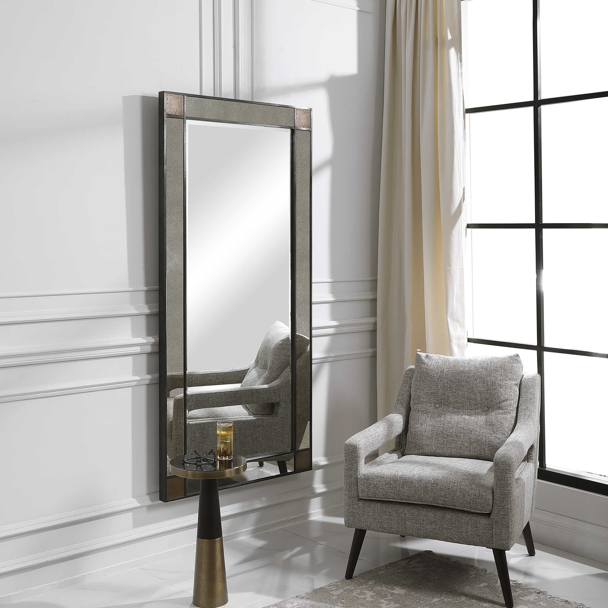 Каждый угол зеркала акцентирован медной облицовкой с мелкими деталями в виде шляпок гвоздей, что придает ему индустриальный шарм. Вы можете повесить его горизонтально или вертикально в зависимости от ваших предпочтений. Зеркало Nawcomb создаст в вашем интерьере атмосферу современного стиля с изысканными деталями, придавая вашей комнате неповторимую эстетику.