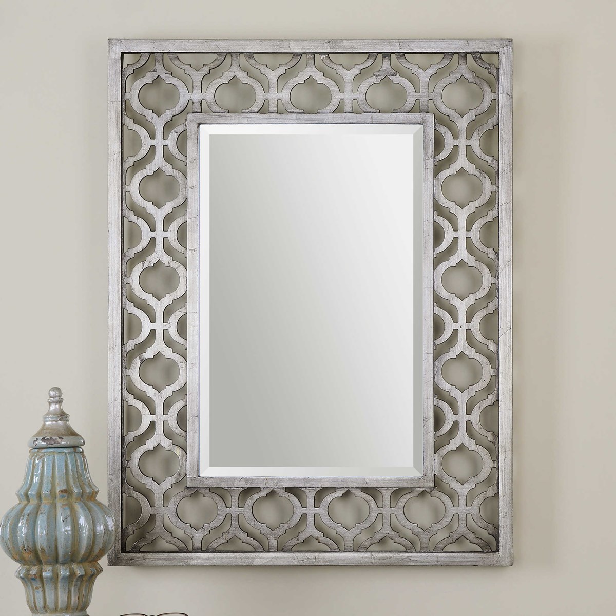 Зеркало Sorbolo от американского бренда Uttermost - это зеркало, которое сочетает в себе элегантность и художественный дизайн. Рамка зеркала украшена декоративными элементами и отделана листовым серебром с эффектом старины, что придает ей особый шарм и характер. Скошенное зеркало позволяет вам варьировать его ориентацию и подвешивать как горизонтально, так и вертикально, чтобы подстроить его под ваш интерьер. Sorbolo - это зеркало, которое добавит изыска и стиля в вашу комнату, подчеркивая ваш уникальный вкус в дизайне интерьера.