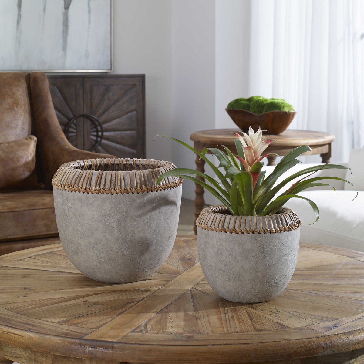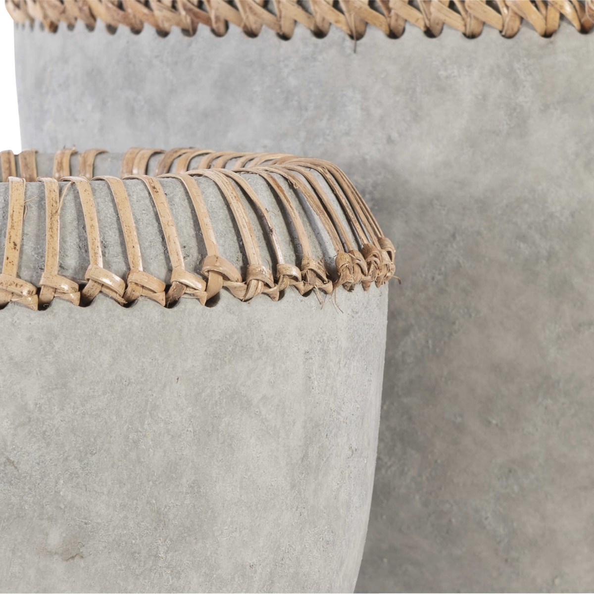 Набор мисок Aponi представляет собой уютное сочетание двух глиняных мисок, которые выполнены в натуральном бетонно-сером оттенке и украшены деталями из плетеного ротанга. Этот набор привносит в ваш интерьер естественную простоту и природную красоту.