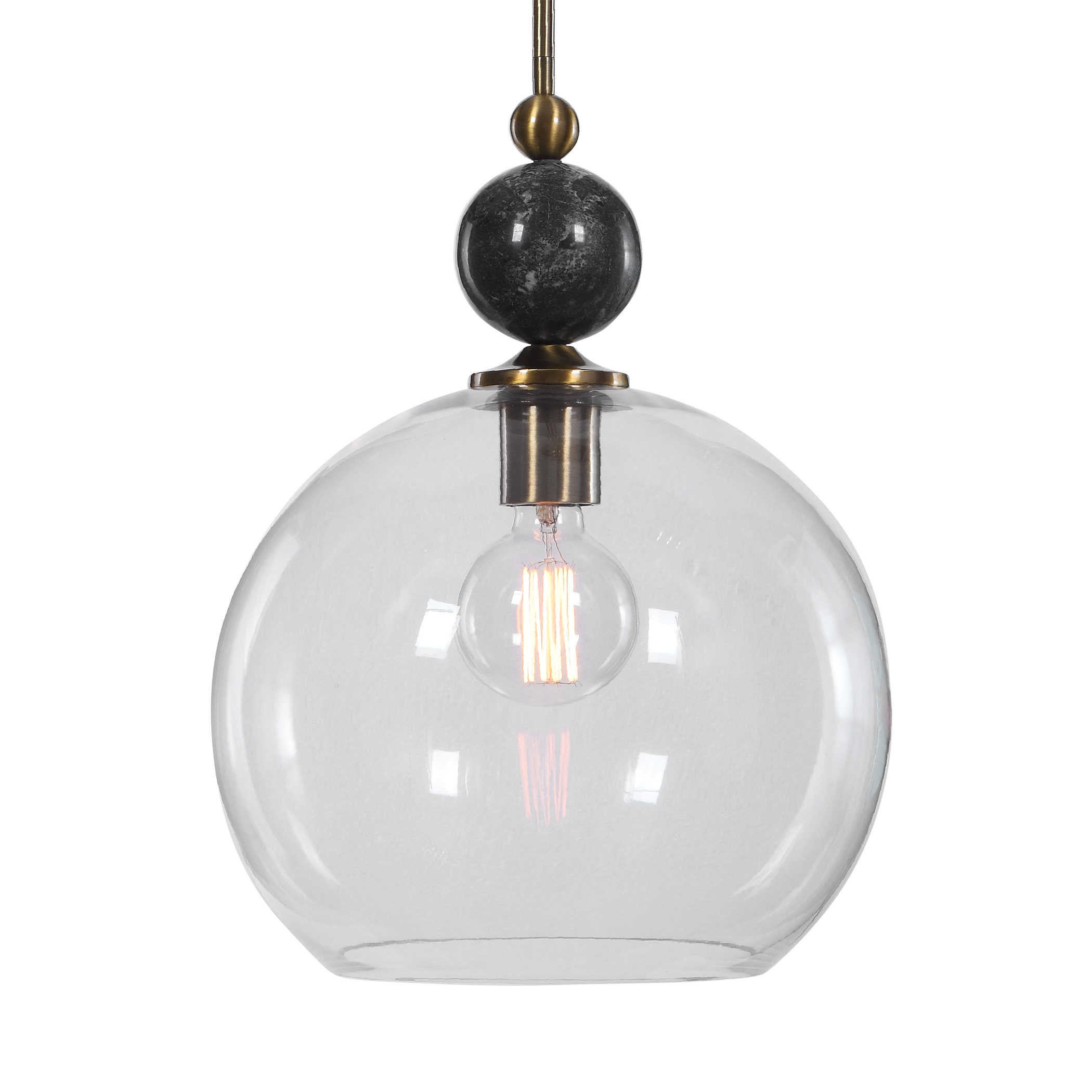 Люстра Mendota — это настоящее произведение искусства, вдохновленное простотой и элегантностью. Её кулон весом 1 литр увенчан роскошным черным мраморным шаром диаметром 33 см, который придает ей уникальный и изысканный вид. Отделка из окисленной состаренной латуни подчеркивает элегантные линии этой люстры, придавая ей теплую атмосферу.