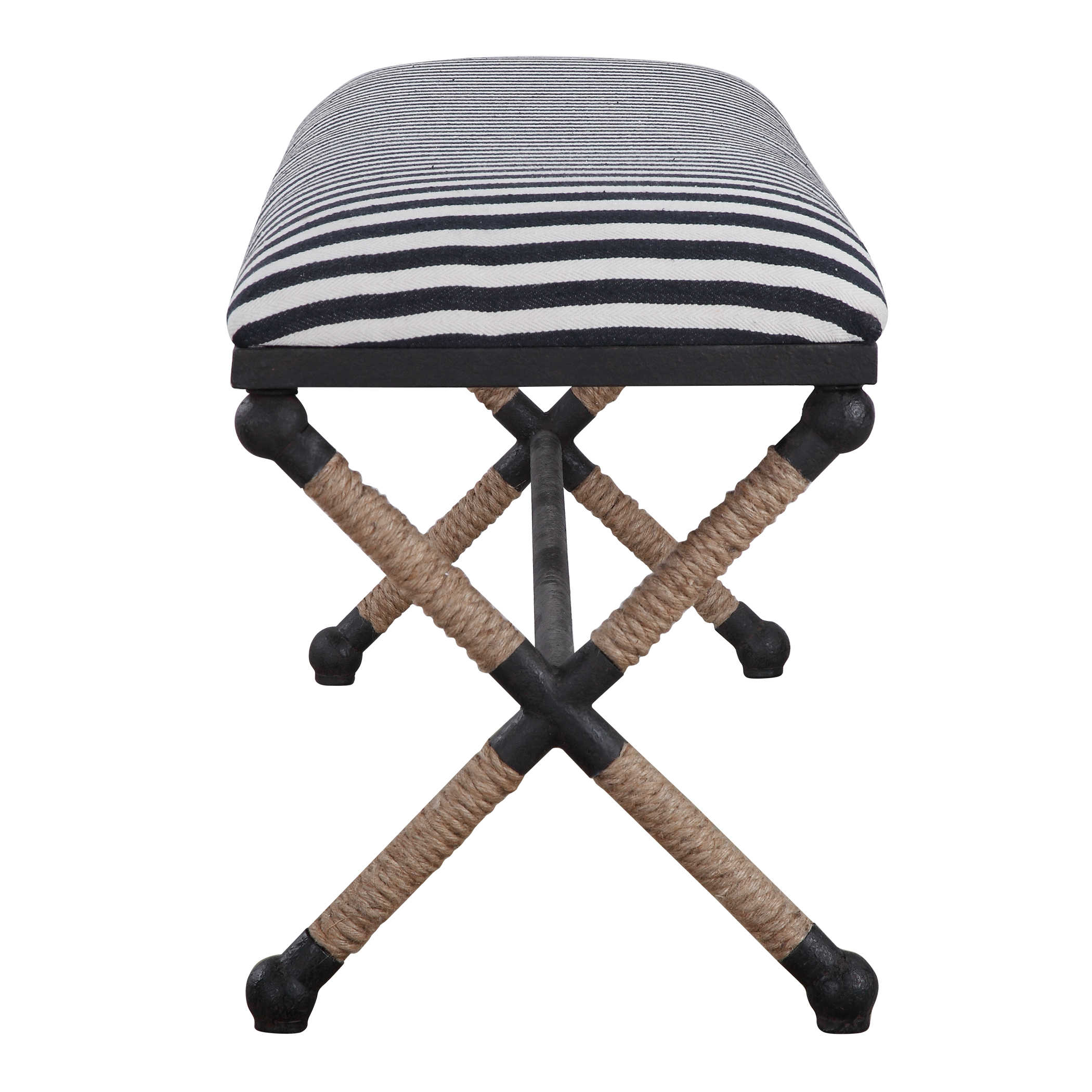 Банкетка Braddock - это уникальное сочетание загородного стиля с морской тематикой. Ее металлическое основание украшено морскими мотивами, а сиденье обтянуто натуральными веревками, придающими ей неповторимый шарм. Мягкий верх, выполненный из плотного хлопка в классическую морскую полоску с яркими синими и кремовыми полосами, придает банкетке Braddock свежий и морской вид. Эта банкетка добавит загородный шарм и морскую атмосферу в ваш интерьер.