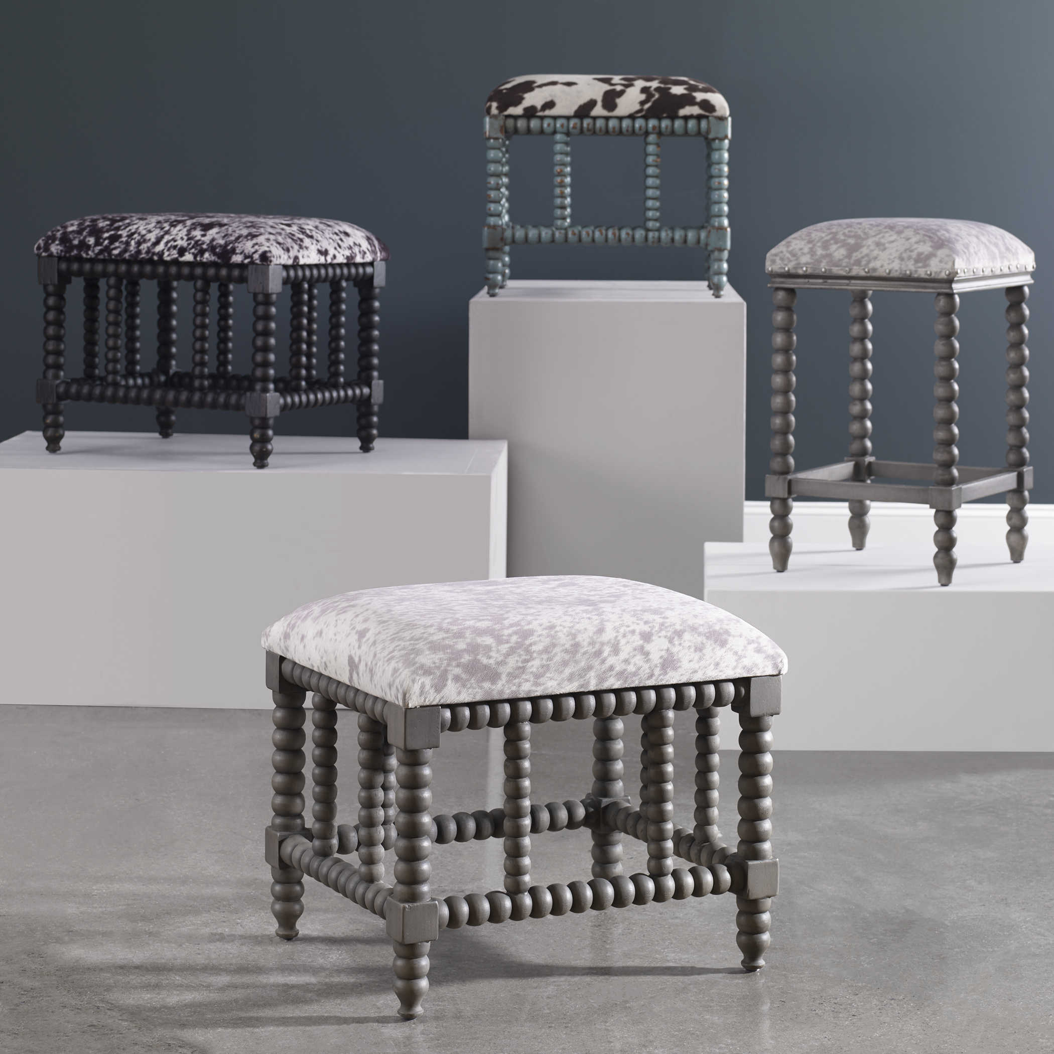 Стили ранчо и современного домика сливаются воедино, создавая эту плюшевую скамью с мягкой обивкой. Мягкое сиденье обтянуто светло-серой и белой искусственной коровьей шкурой, подчеркнутой точеной деревянной основой, окрашенной в сухой французский серый цвет.