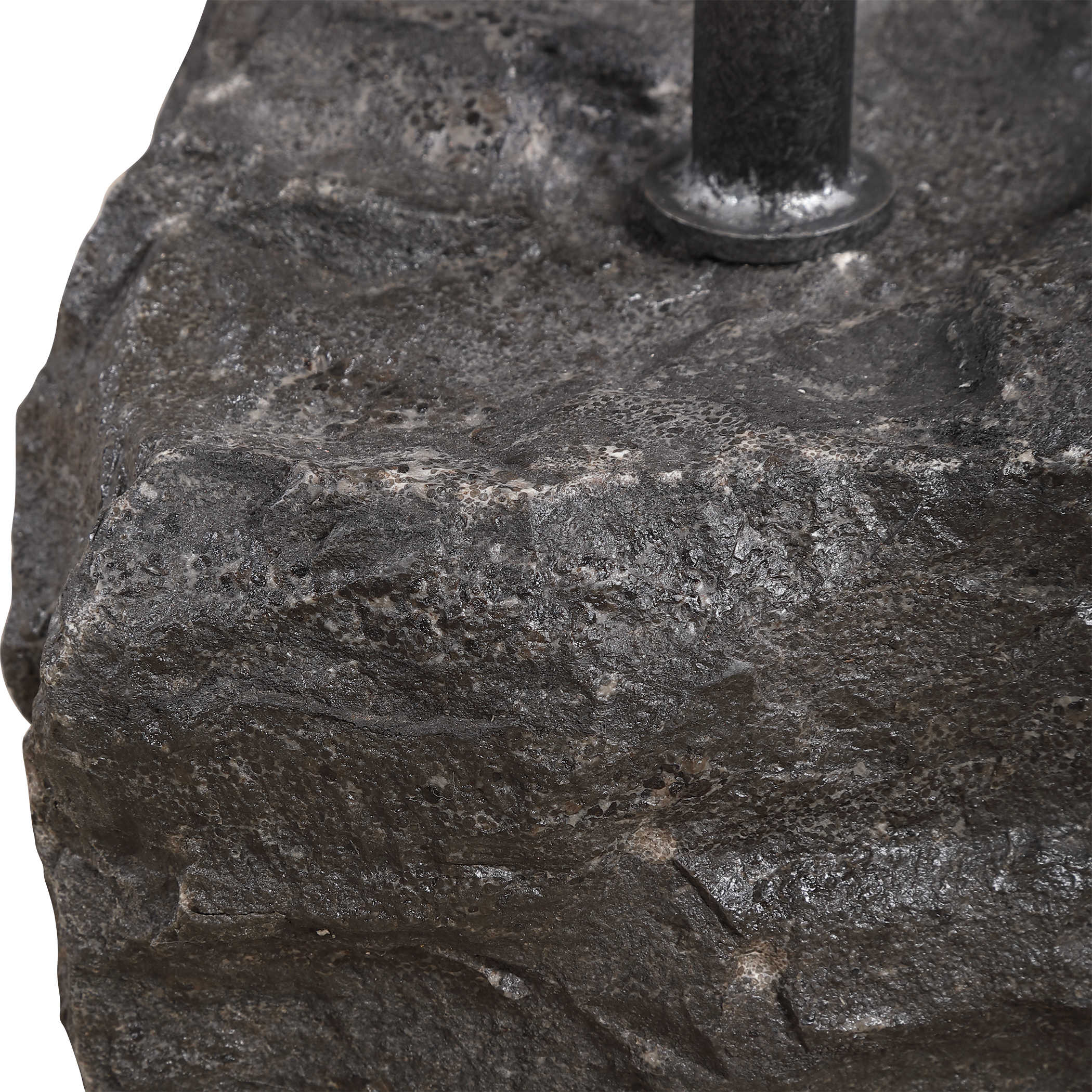 Боковой столик Horton сочетает в себе элементы природы и рустикального шарма. Столешница из натурального переработанного вяза с инкрустированным узором в виде звездных лучей придает ему уникальный характер. Дополненный состаренным железным опорным элементом, столик стабилизируется грубо обработанным блоком из голубого камня с естественными белыми прожилками и мраморной текстурой, что делает Horton универсальным для различных стилей интерьера.