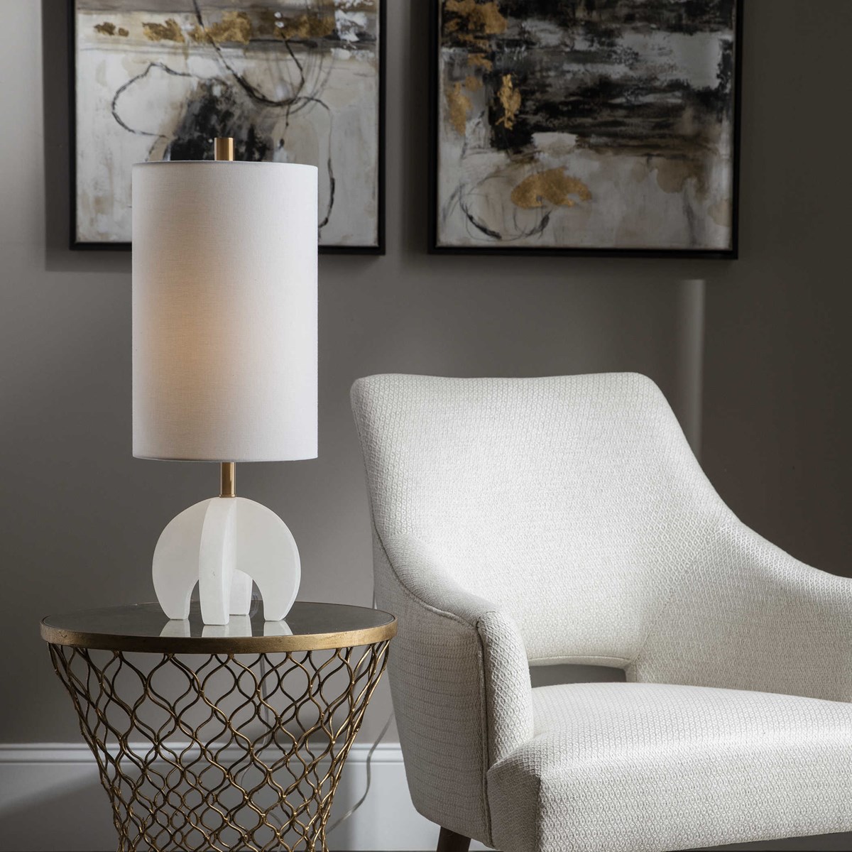 Alanea - это настольная лампа, которая привносит простоту и элегантность в ваш интерьер. Она имеет основание из полированного алебастра уникальной формы, которое придает ей особый шарм. Детали из матовой латуни с покрытием добавляют изысканности и создают уникальный акцент, который будет привлекать взгляды и станет предметом обсуждения в вашем доме.