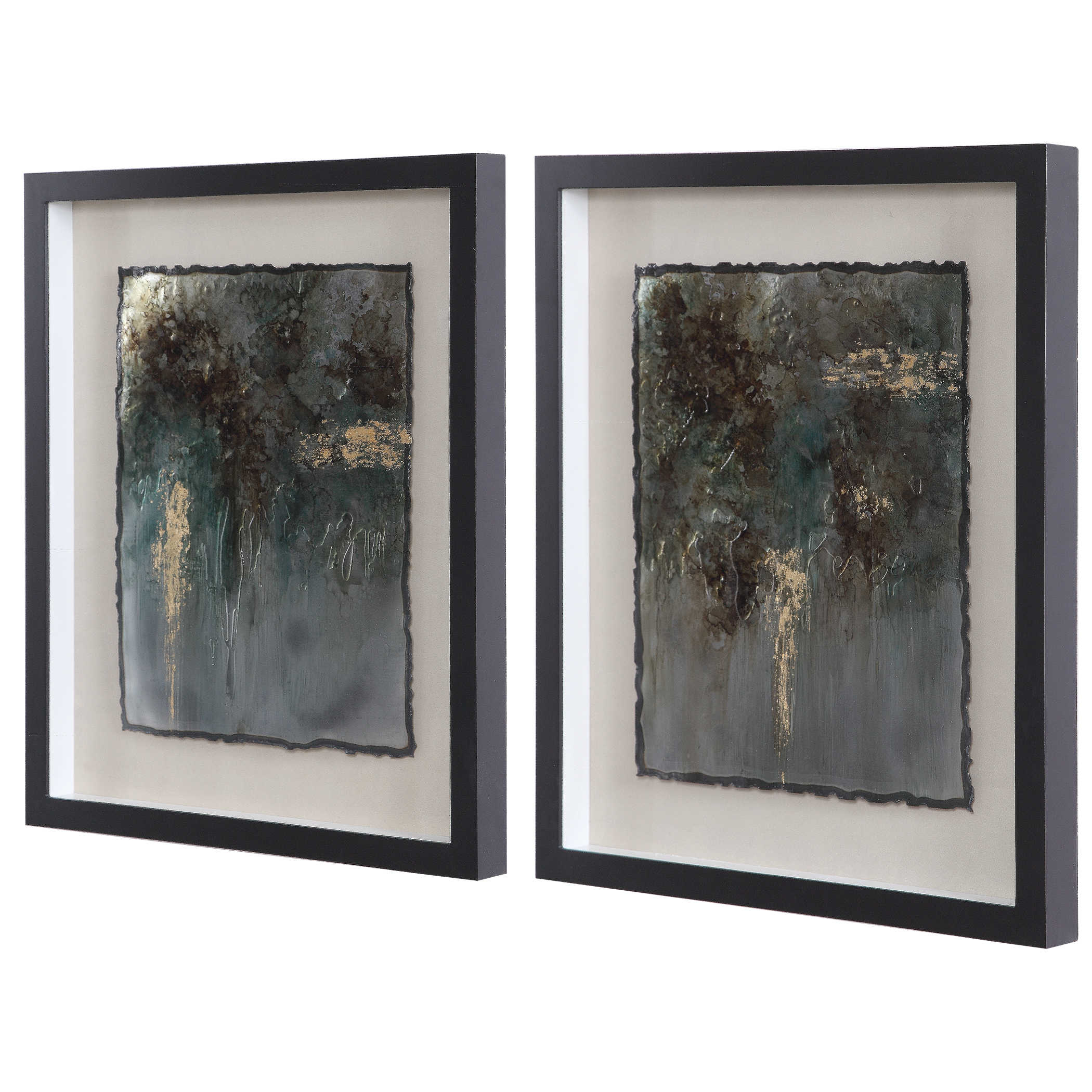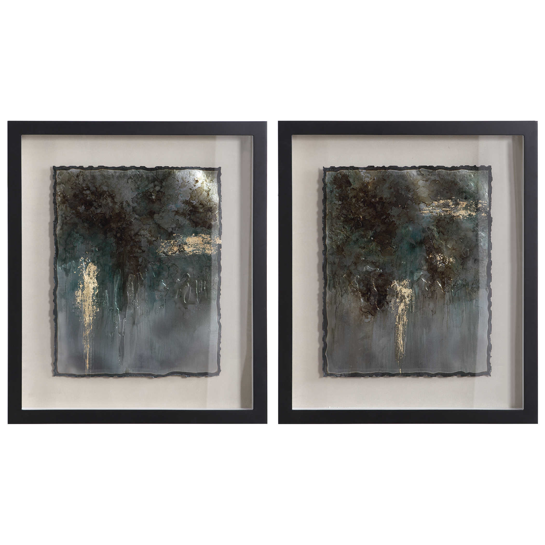 Это современное произведение искусства, созданное вручную на металлических листах, завораживает своими оттенками серебра, сусального золота, темно-коричневого и зеленого. Каждая деталь заботливо закрыта защитным стеклом и мастерски вписана в черную раму в стиле теневого ящика на бежевом фоне. Благодаря уникальной ручной работе каждое произведение приобретает свой неповторимый характер и может немного отличаться от других, что придает ему особую ценность. Rustic Patina - это искусство, которое не только украсит ваш интерьер, но и придаст ему непередаваемую глубину и красоту.