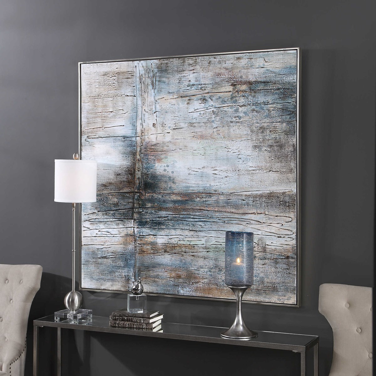Open Seas от Uttermost — это уникальное абстрактное произведение, созданное вручную на холсте с выраженной текстурой. Используя оттенки бирюзового, зеленого и голубого, художник подчеркнул композицию нейтральными серыми, коричневыми и угольными тонами.
