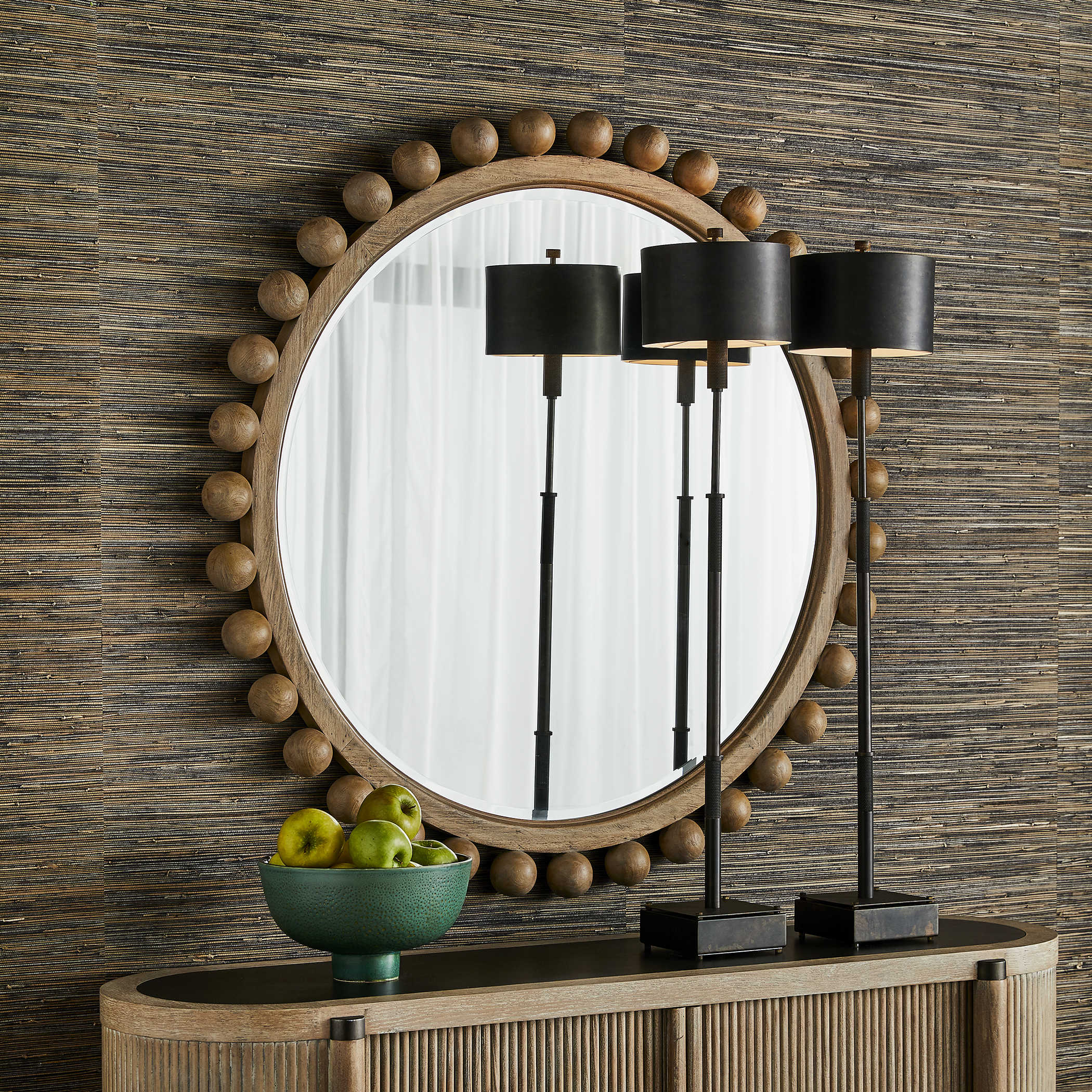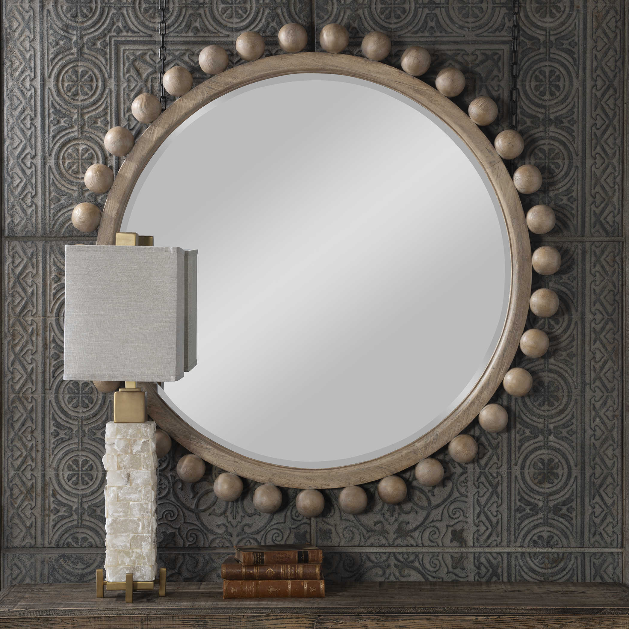 Зеркало Brianza Round от американского бренда Uttermost представляет собой уникальное изделие, в котором твердые сферы из красного дерева придают раме оригинальную текстуру. Рама изготовлена из состаренного дерева и покрыта тонкой серой глазурью, придающей ей особый характер. Большой скос зеркала шириной 3 см добавляет ему дополнительный объем и структуру. Это зеркало станет изысканным акцентом в вашем интерьере и придаст ему стиль и харизму.