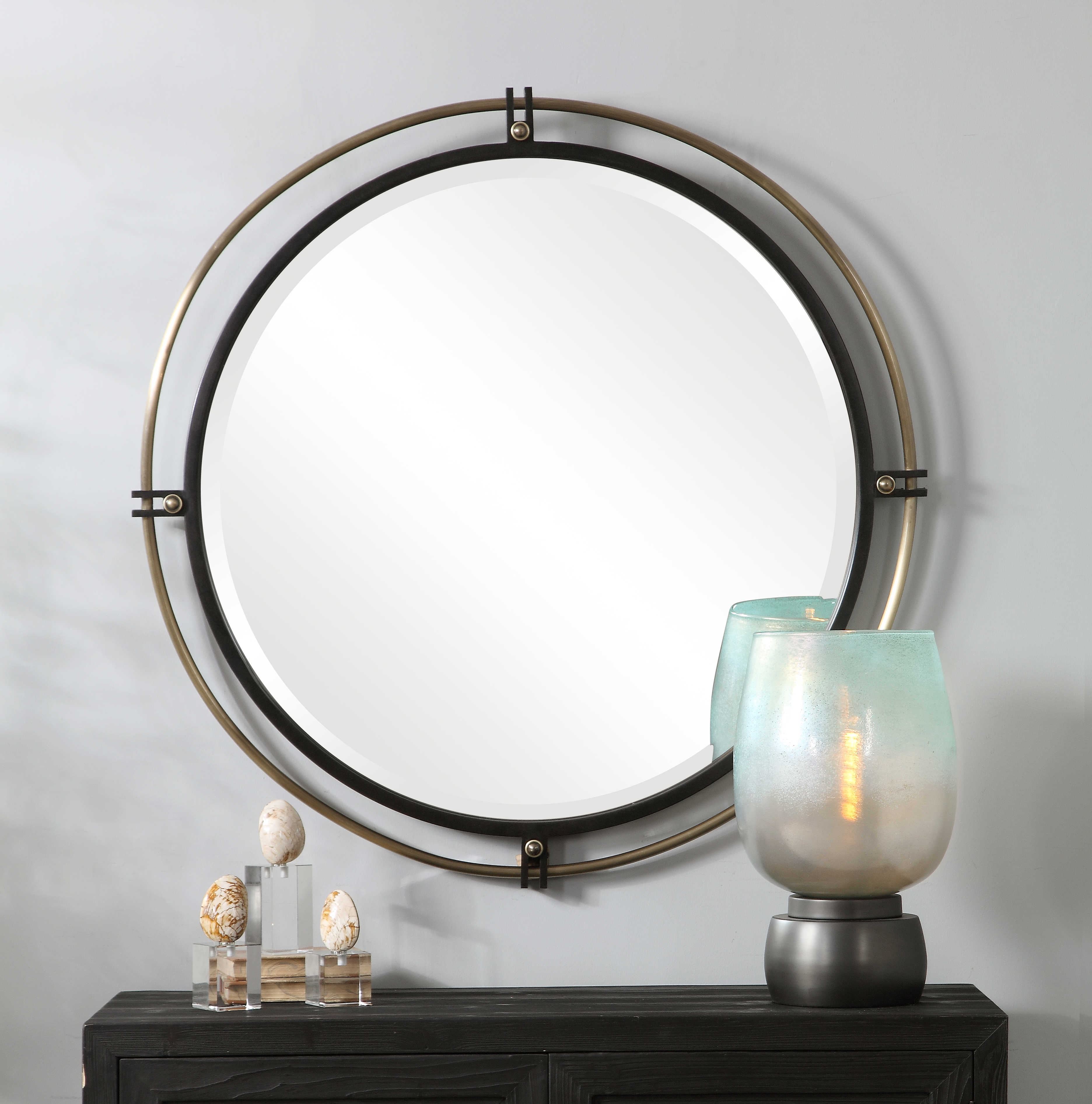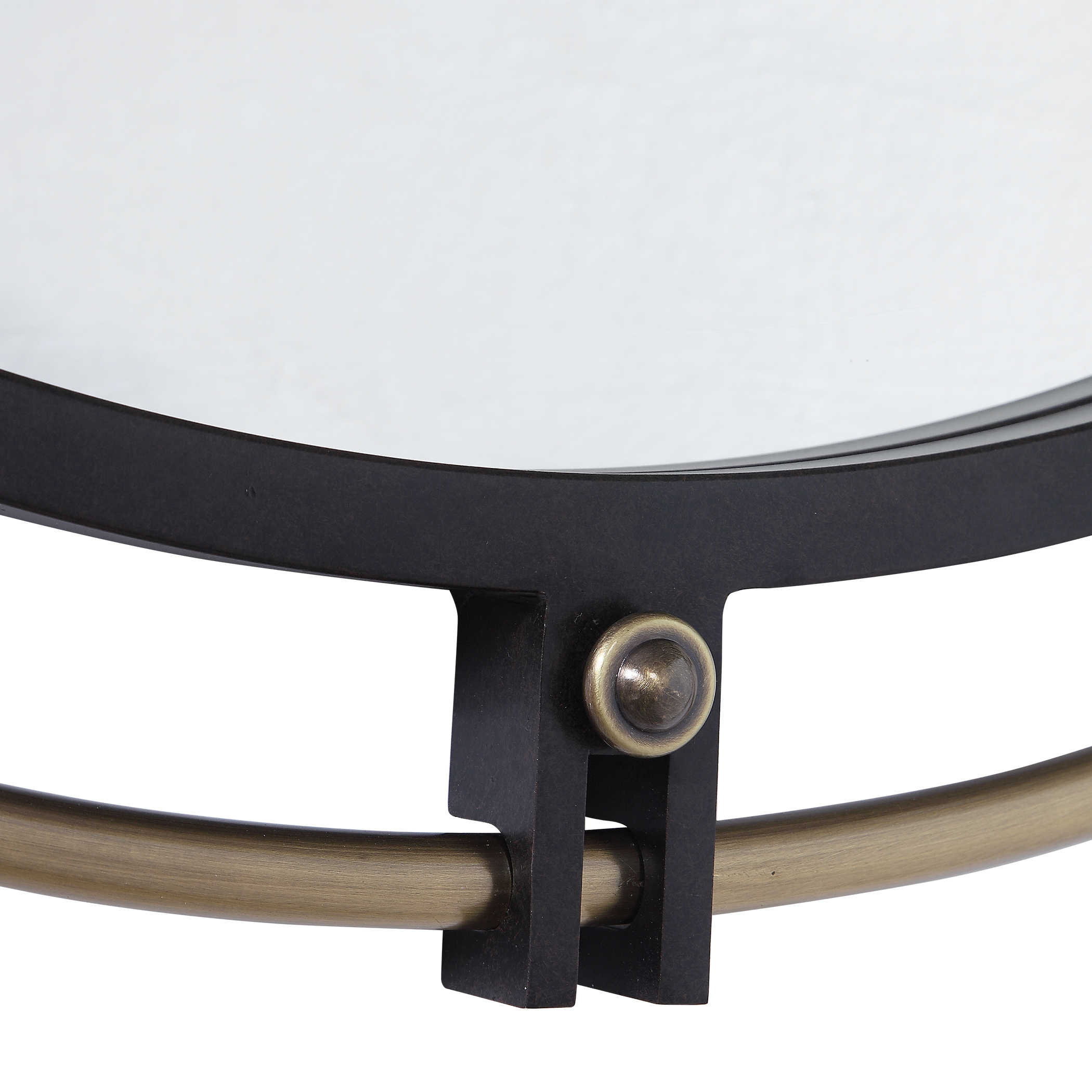 Зеркало Marsden Round от американского бренда Uttermost - это истинное воплощение утонченного стиля середины века. Его круглая форма придает ему оригинальность, а внешнее кольцо из матовой латуни и внутренняя рама из темной бронзы с акцентами на болтах из матовой латуни создают элегантное сочетание материалов.