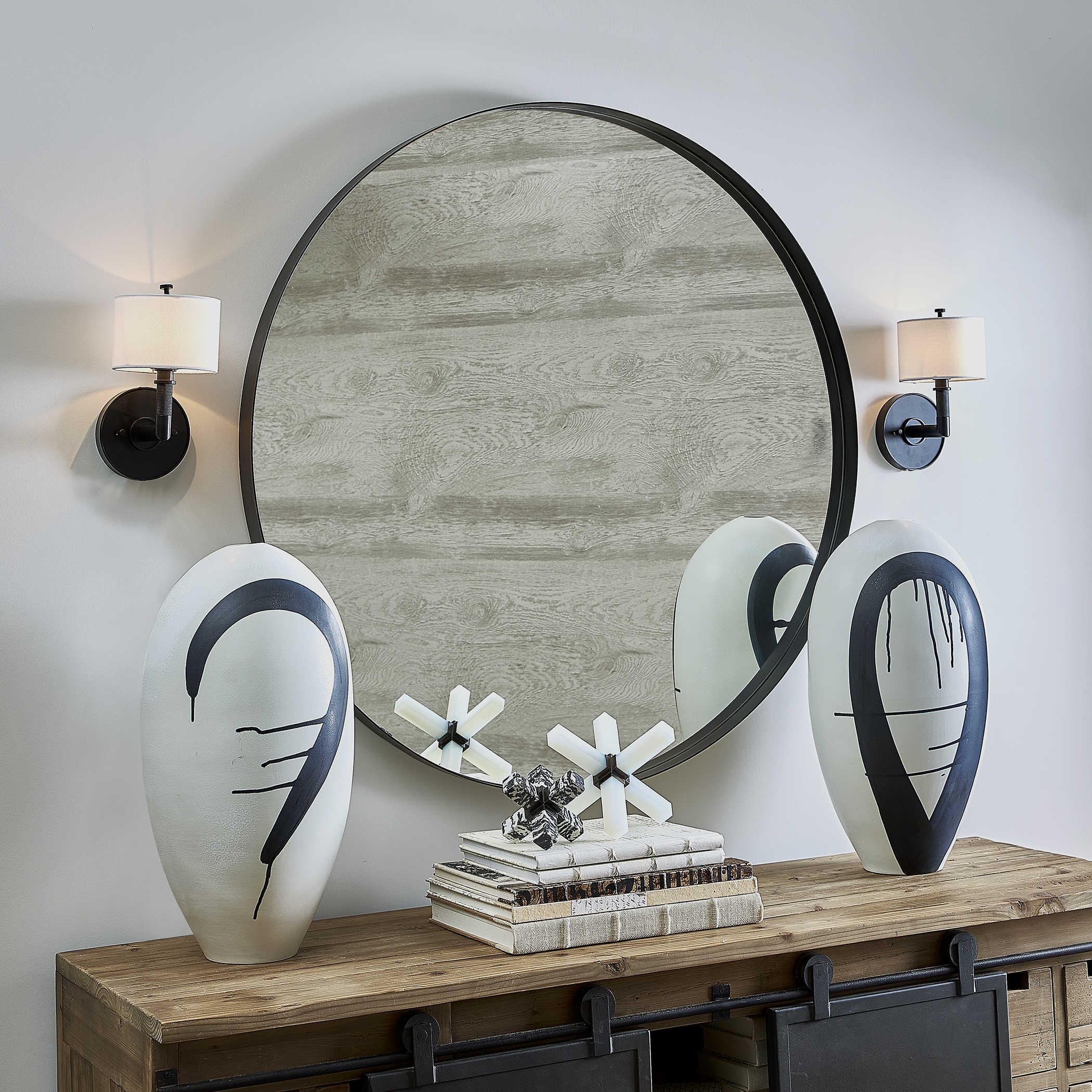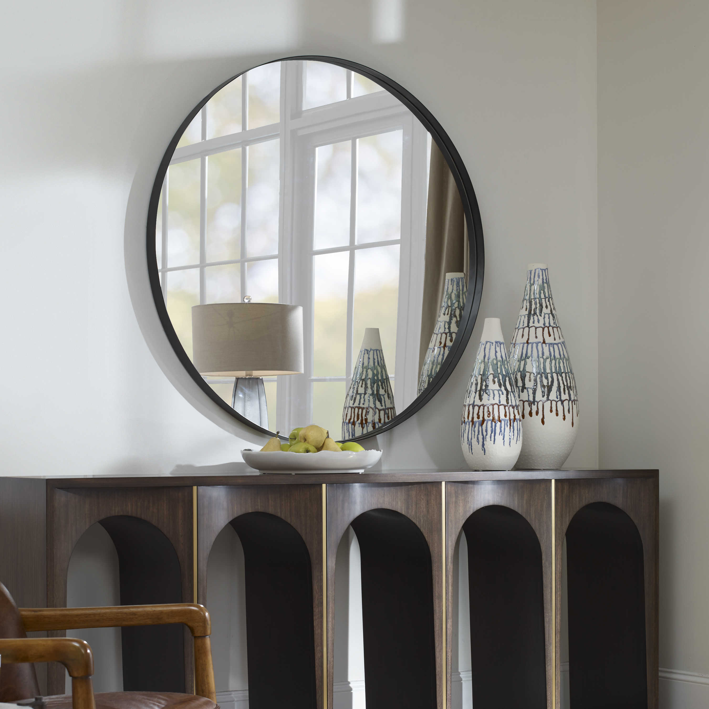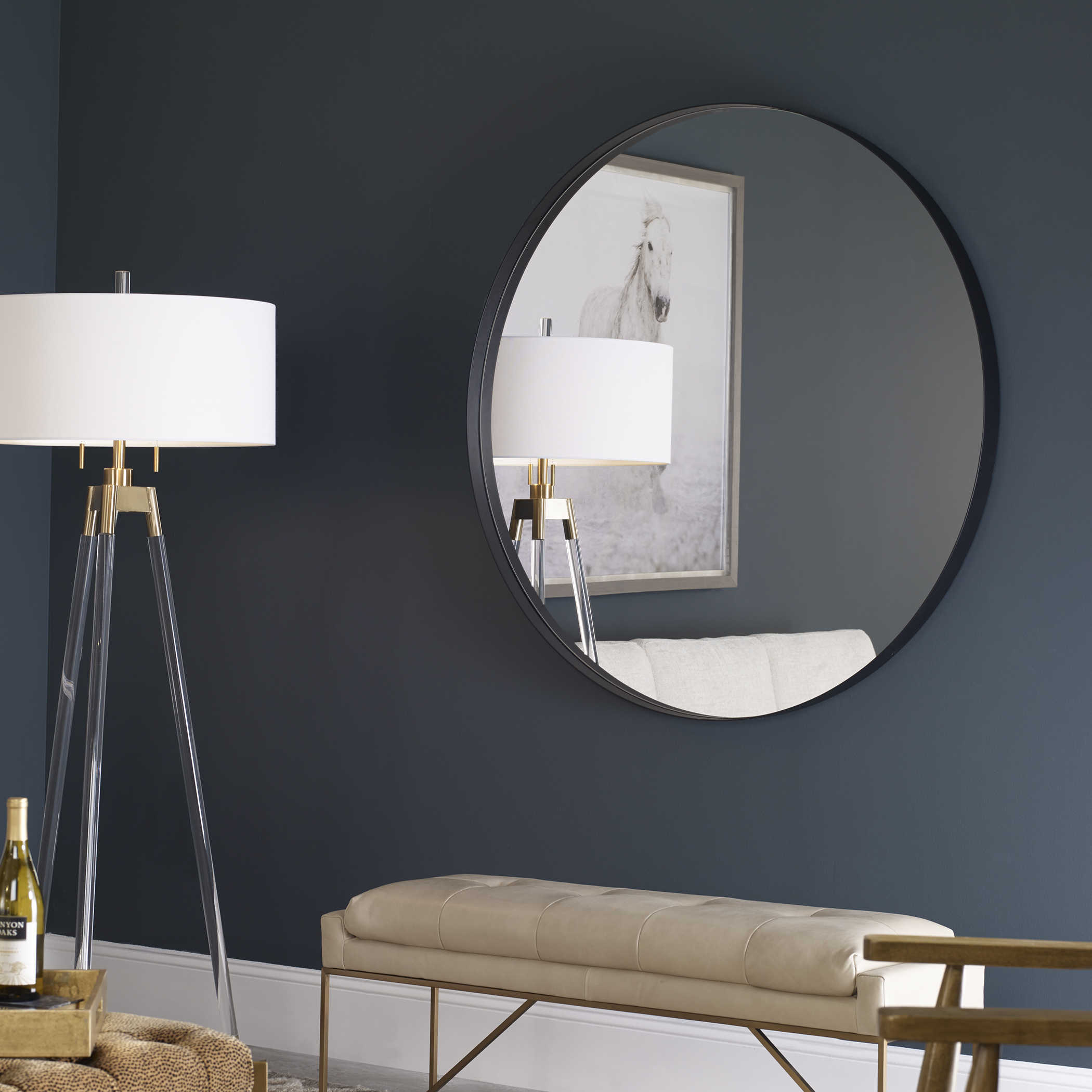 Padria Black Round Mirror от американского бренда Uttermost - это классическое круглое зеркало, которое впечатляет своей прочной рамой из нержавеющей стали, украшенной изящным покрытием из полированного никеля в черном цвете. Это изделие сочетает в себе изысканный стиль и надежность материалов, создавая уникальное сочетание функциональности и элегантности.