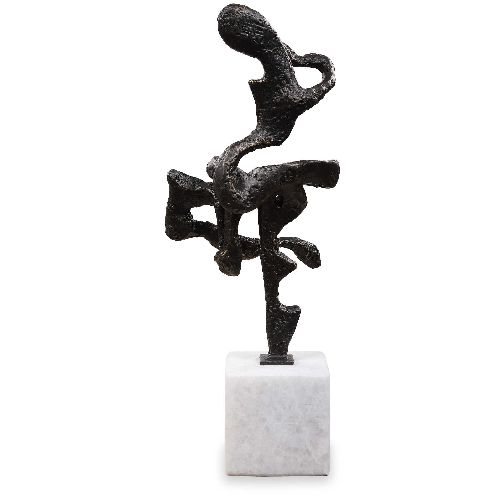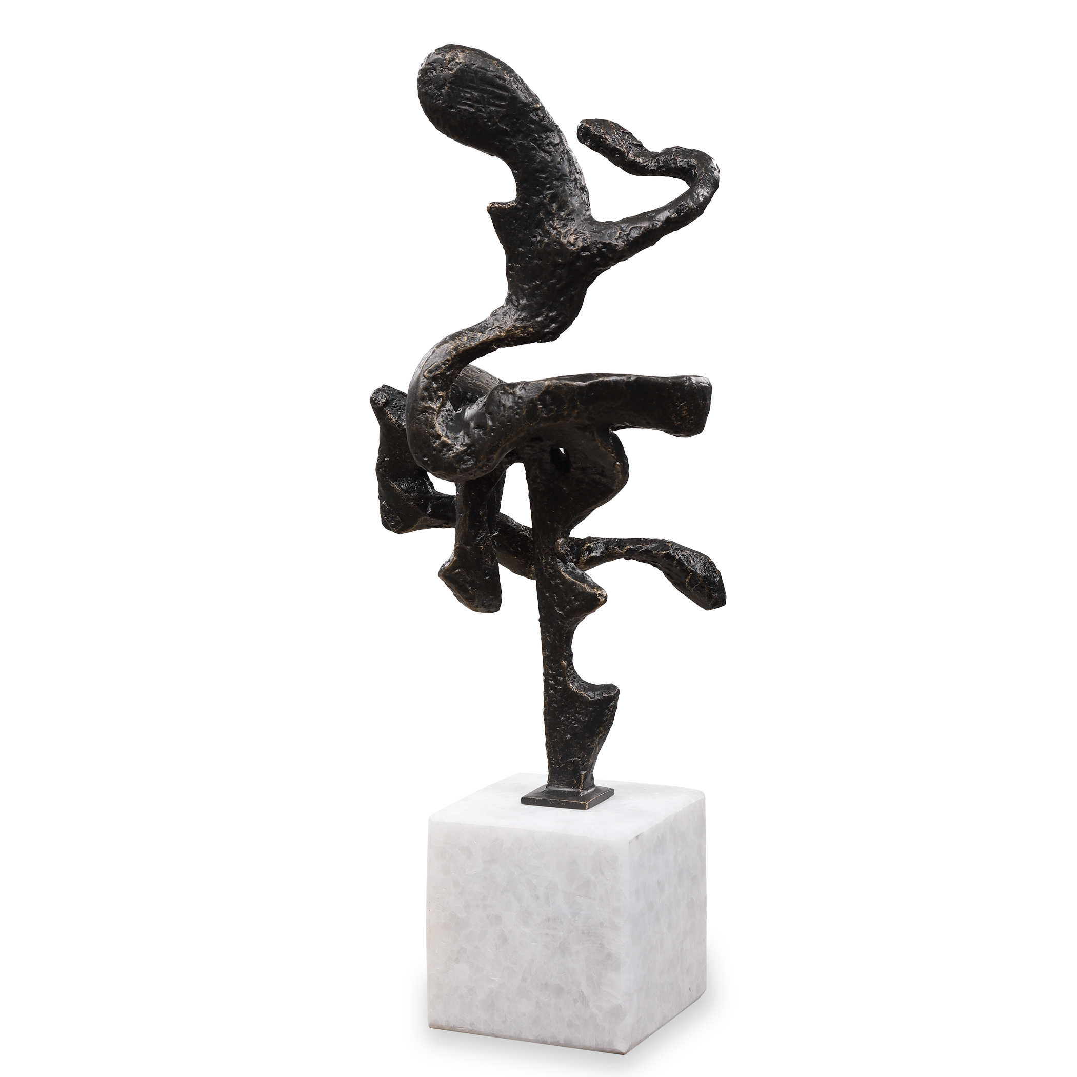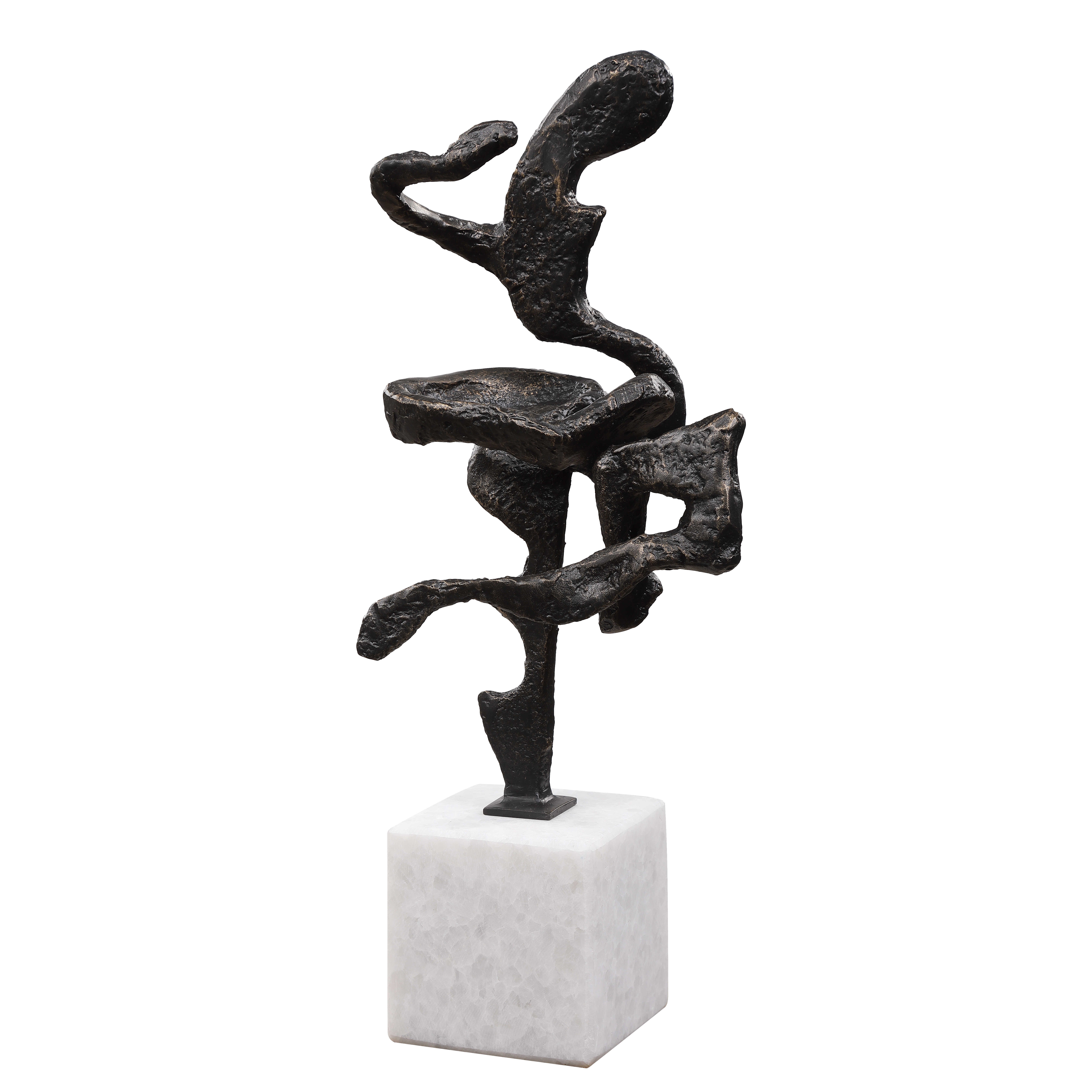 Скульптура Salsa представляет собой увлекательную абстрактную интерпретацию фигурного движения и танца. Это произведение искусства выполнено из чугуна, который придает ему прочность и устойчивость, и отделано темной бронзовой отделкой, что придает скульптуре элегантность и таинственность.
