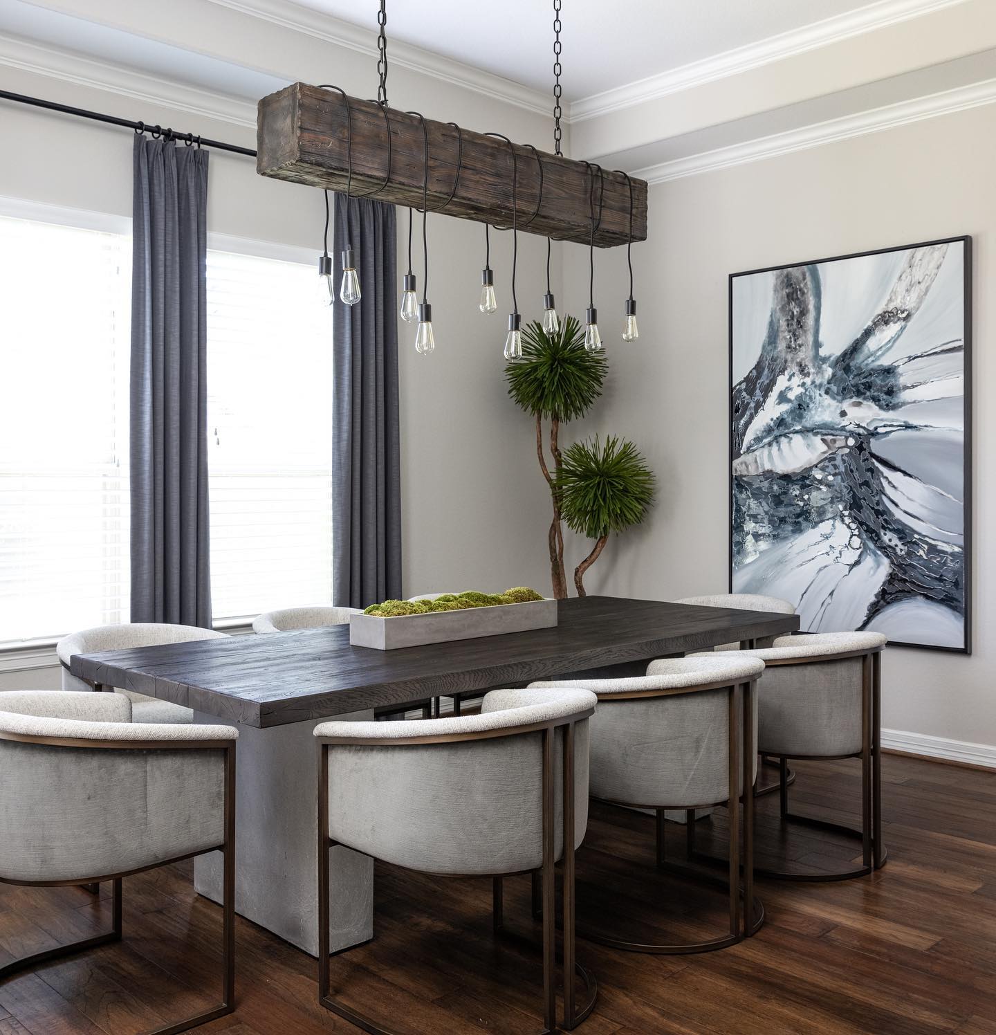 Люстра Reading Station представляет собой подвеску, выполненную в виде грубой и потертой деревянной конструкции, окрашенной в насыщенный цвет эспрессо, что создает атмосферу теплой элегантности загородного дома. Металлические вставки из темной бронзы добавляют контраст и структуру этой негабаритной и внушительной люстры.