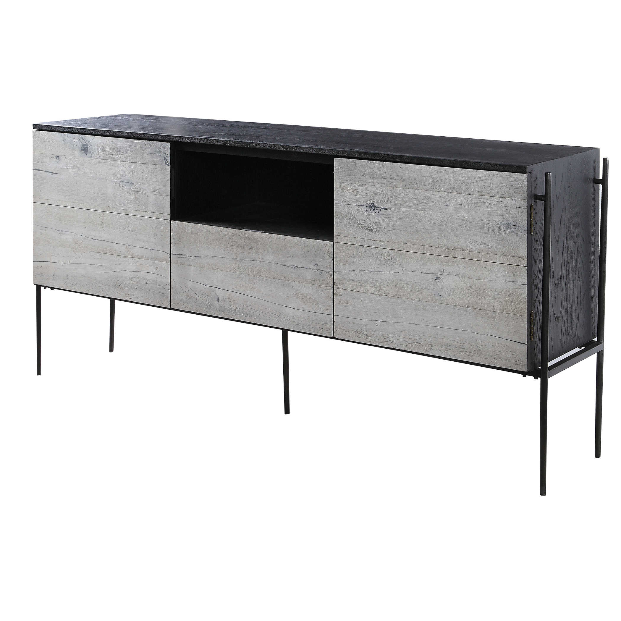 Медиа-консоль Jess Media - воплощение современного стиля и функциональности. Изготовленная из дубового шпона и цельного массива, она представляет собой элегантную комбинацию угольно-черного и грибовидно-серого цветов. Консоль имеет дверцы шкафа с регулируемой полкой, центральный ящик и открытую зону с прокладкой проводов. Натуральная древесина придает ей аутентичность и характер, хотя может появиться небольшая трещинность на поверхности. Jess Media - идеальное решение для использования под телевизором, как буфет или центральный акцент в комнате, сочетая функциональность и привлекательный дизайн.
